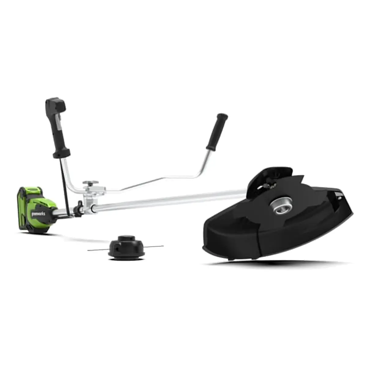 В процессе работы устройство не потребляет горюче-смазочные материалы и не выделяет выхлопные газы, благодаря чему является экологичной альтернативой бензокосам. С целью снижения стоимости батарея и зарядное устройство не включены в комплект поставки. Аксессуары можно приобрести отдельно либо использовать комплектующие от других электроинструментов Greenworks 40-вольтовой линейки.