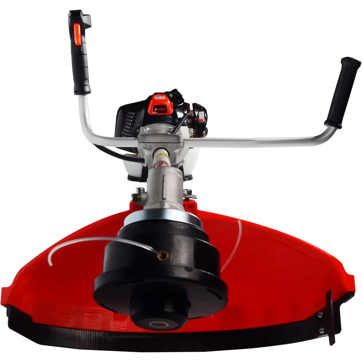 Защитный кожух из прочного пластика надежно закрывает режущую часть садового триммера, обеспечивая безопасность в работе.