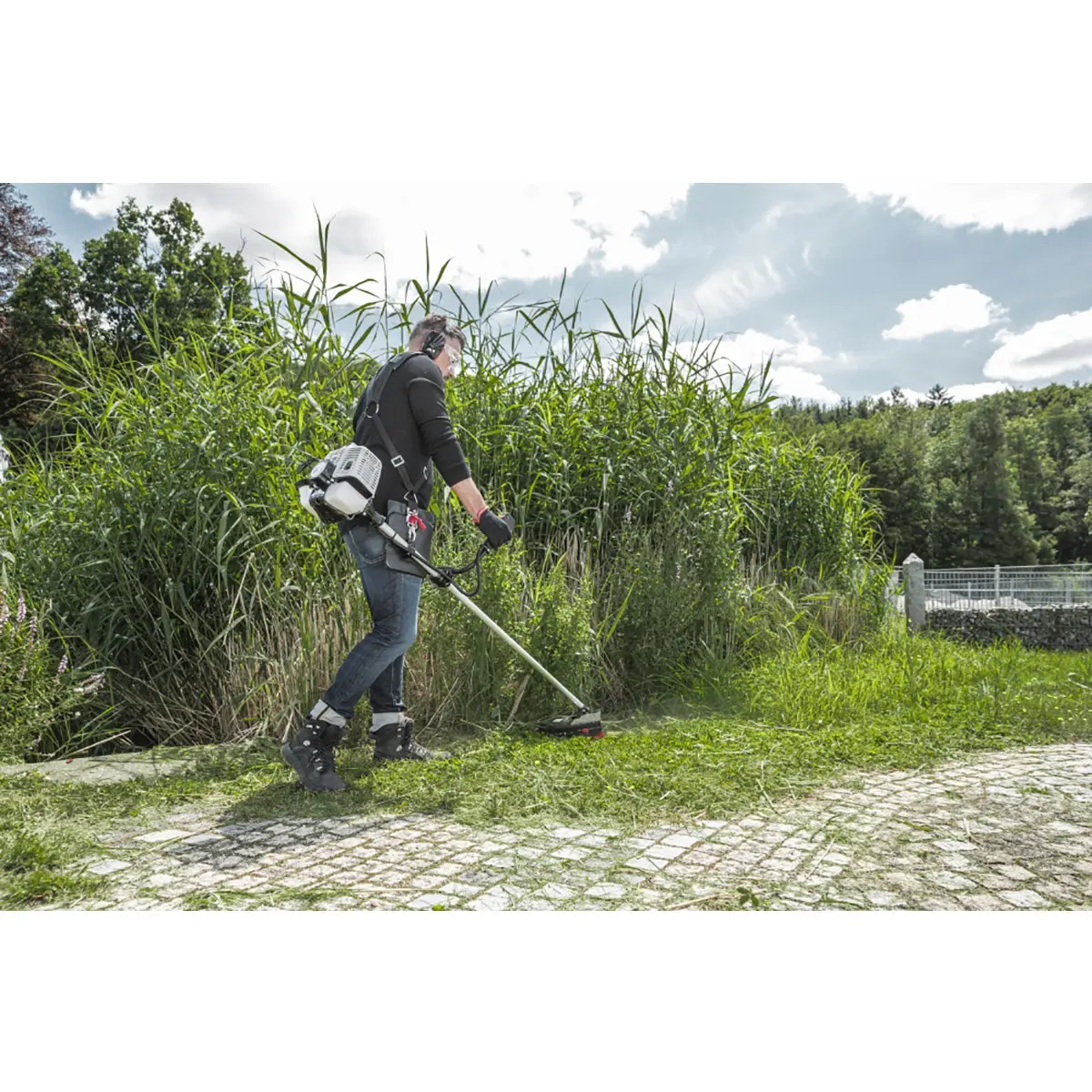 Бензокоса отличается удобством и эргономичностью в использовании. Эргономичная велосипедная ручка обеспечивает удобный захват и контроль над инструментом, а наплечный ремень с мягкой тазобедренной защитой распределяет вес по всему телу, снижая нагрузку на руки и спину.