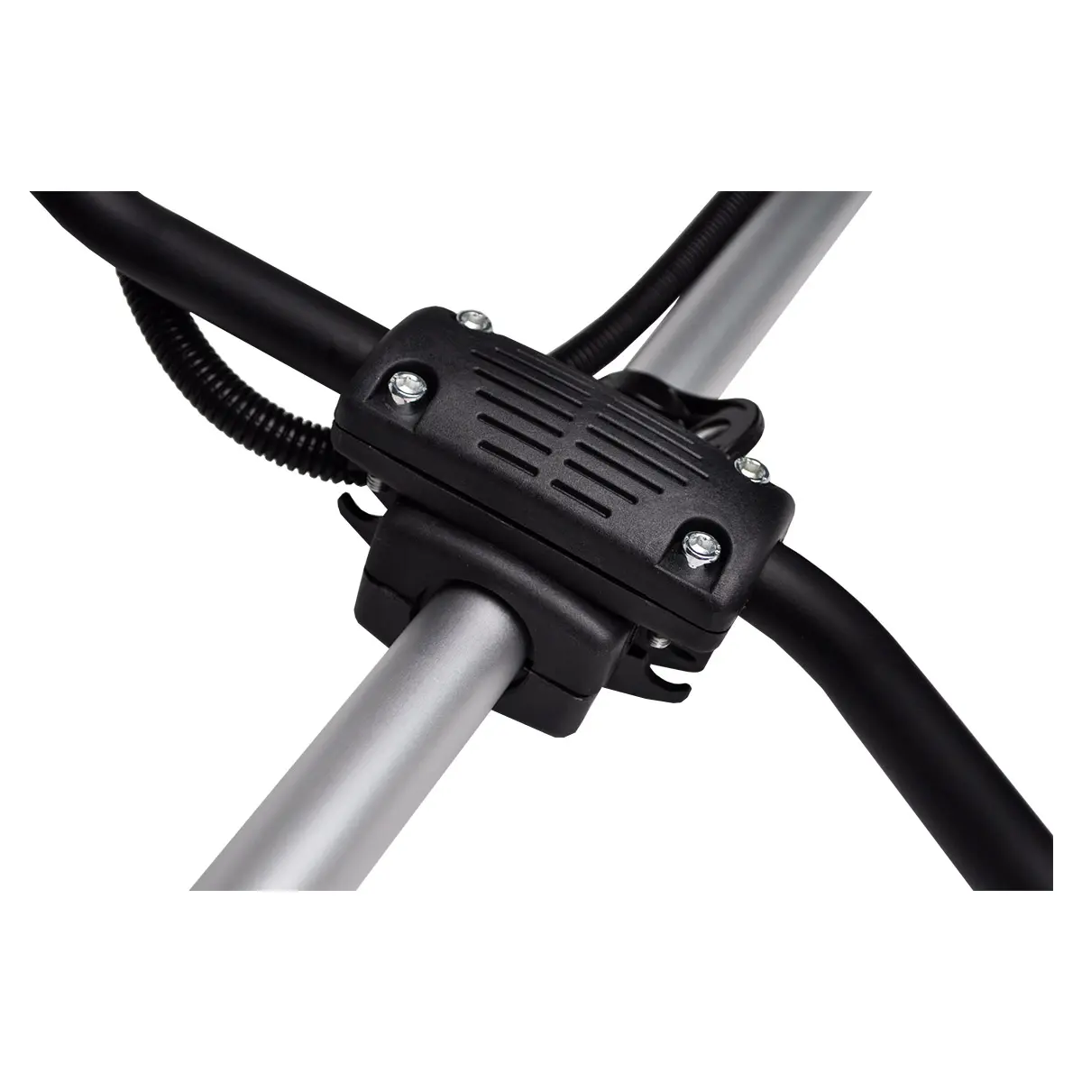 Комбинированный режущий элемент позволяет обрабатывать различные участки. Леска эффективно стрижет траву и сорняки, а нож справляется с жесткой травой, кустарниками и молодыми ветками.