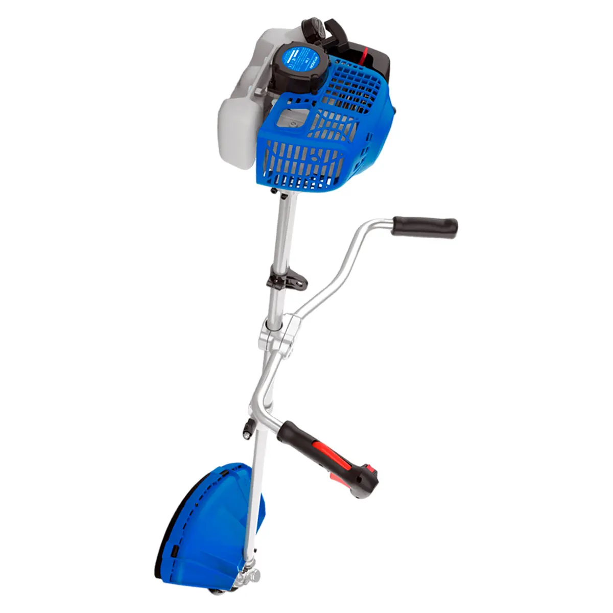 Бензокоса оснащена кожухом полукруглой формы, который защищает вас от летящих срезанных растений, не уменьшая угол обзора. Через полупрозрачные пластиковые стенки бензобака объемом 0,75 л удобно отслеживать уровень топлива. Все элементы управления встроены в регулируемую по высоте рукоятку велосипедного типа с прорезиненными нескользящими ручками. В комплекте предусмотрен двухплечевой ремень, который помогает полностью контролировать положение триммера во время работы, снижает нагрузку на руки и усталость.