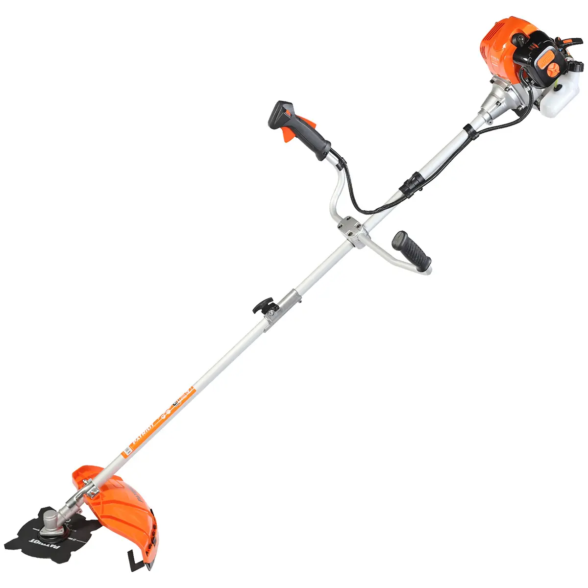 Защитный кожух предотвращает разлетание обрезков растительности и грязи, что особенно важно при работе с ядовитыми растениями, например, с борщевиком. Стоит отметить яркий рыжий цвет бензокосы. Этот яркий оттенок поможет вам не упустить инструмент из виду при работе с густыми и высокими зарослями. Таким образом, вы сможете эффективно и аккуратно обрабатывать свой участок, достигая отличных результатов.