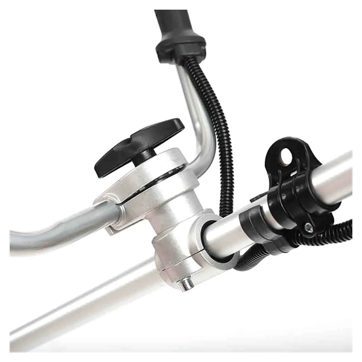 Для повышения комфорта работы, инструмент оснащен антивибрационной системой, которая снижает колебания, передаваемые на руки пользователя. Для выполнения больших объемов работ в комплекте также имеется ремень-разгрузка ранцевого типа. Он равномерно распределяет вес инструмента, освобождая ваши руки для управления мотокосой. Курок газа и его фиксатор вынесены на удобную регулируемую рукоять в форме U, что обеспечивает комфортный и широкий хват.