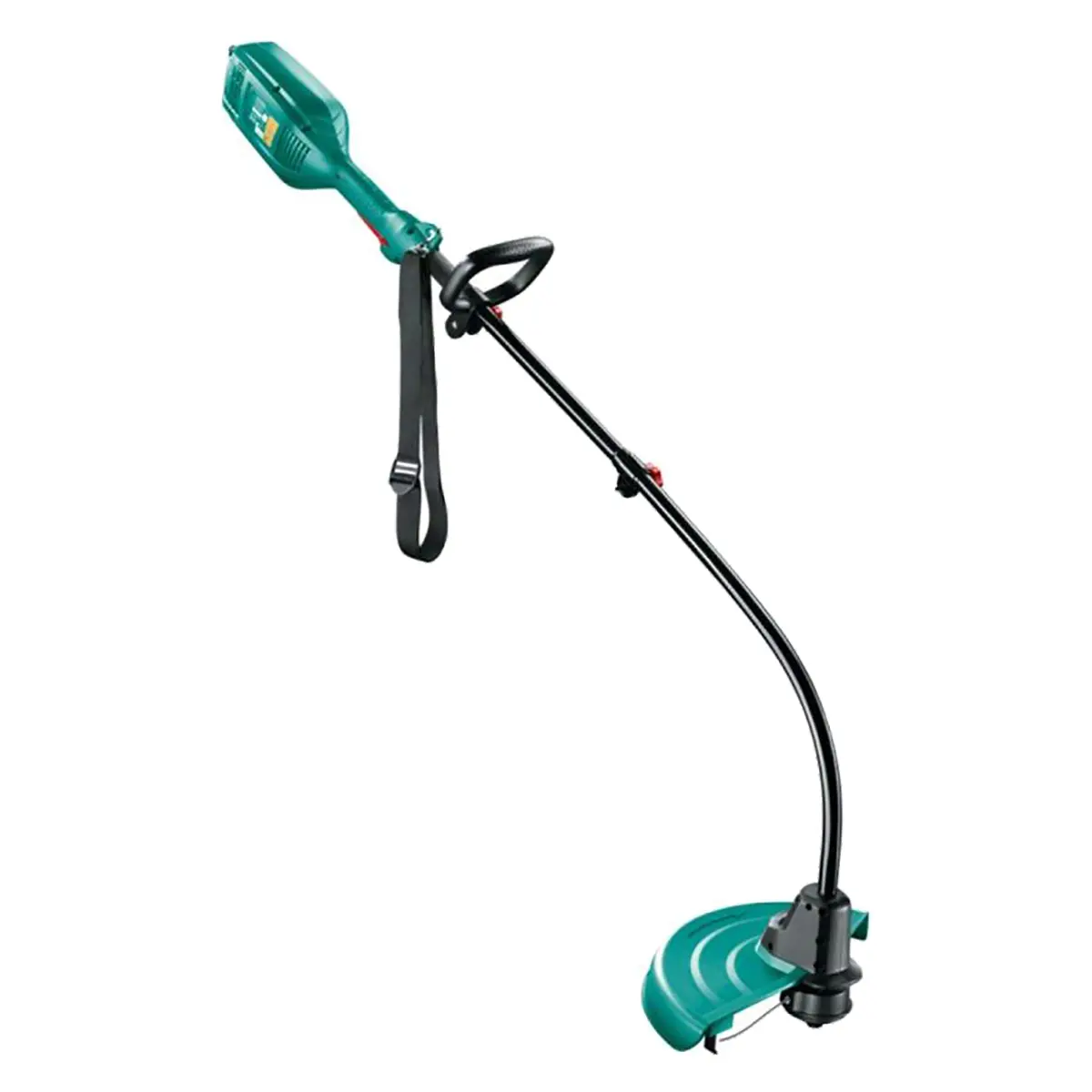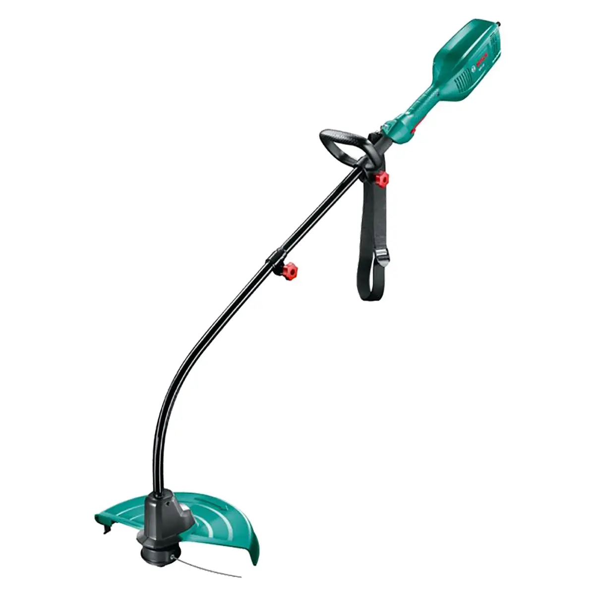 Эргономичная штанга имеет специальный изгиб, обеспечивающий удобную стрижку травы. Благодаря этому, можно обрабатывать большие площади без излишней нагрузки на руки и спину. В комплект поставки входит накидной ремень, который позволяет фиксировать инструмент в рабочем положении, обеспечивая дополнительный комфорт во время работы.