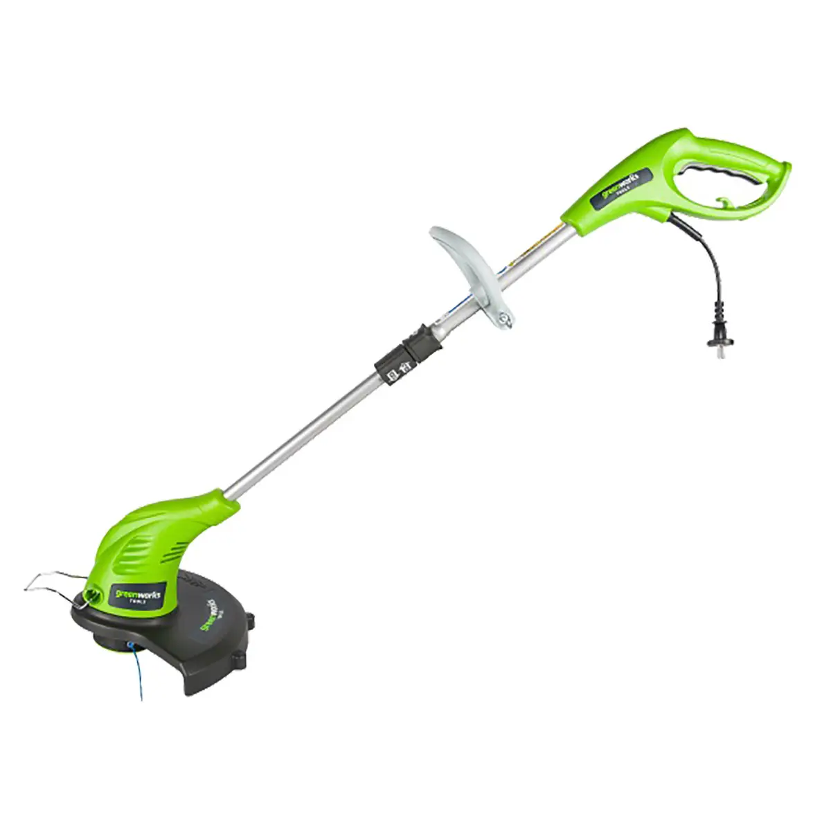 Электрический триммер Greenworks GST5033 - инструмент бытового класса, предназначенный для ухода за газонами, очистки придомовых территорий от зарослей травы и подрезки молодой поросли. По сравнению с колесными газонокосилками мотокоса отличается большей мобильностью и маневренностью, позволяя работать в труднодоступных местах, на неровном грунте, а также близко к деревьям, оградам, стенам и другим препятствиям. За счет сетевого питания устройство характеризуется низкой эксплуатационной стоимостью, исключая необходимость тратить средства на приобретение топлива и смазочных материалов.