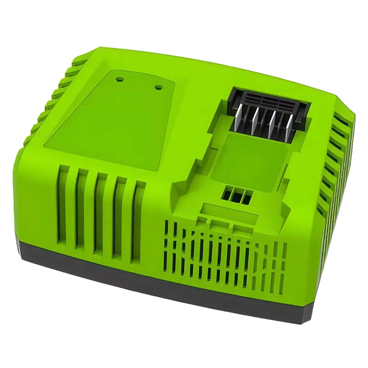 Воздуходув работает от аккумуляторной батареи G-MAX 40V (2 А/Ч или 4 А/ч, в комплект не входят), которую можно использовать с другими устройствами из линейки устройств GreenWorks 40V.