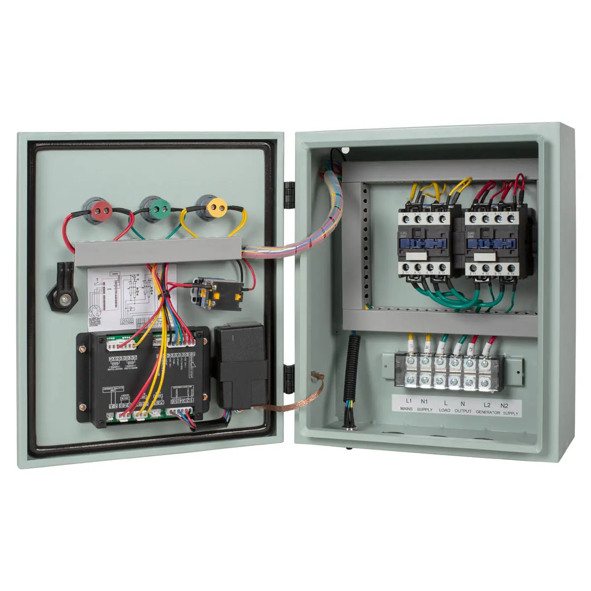 Блок АВР для дизельного генератора АМО 25А 380 В представляет собой электронное устройство, разработанное для обеспечения автоматического запуска источника энергии и последующего подключения потребителей при аварии в основной сети. Когда электросеть испытывает сбой или отключается, оборудование обнаруживает эту проблему и автоматически запускает дизель-генератор и переключает потребителей на генераторное питание, обеспечивая непрерывную работу электрооборудования.