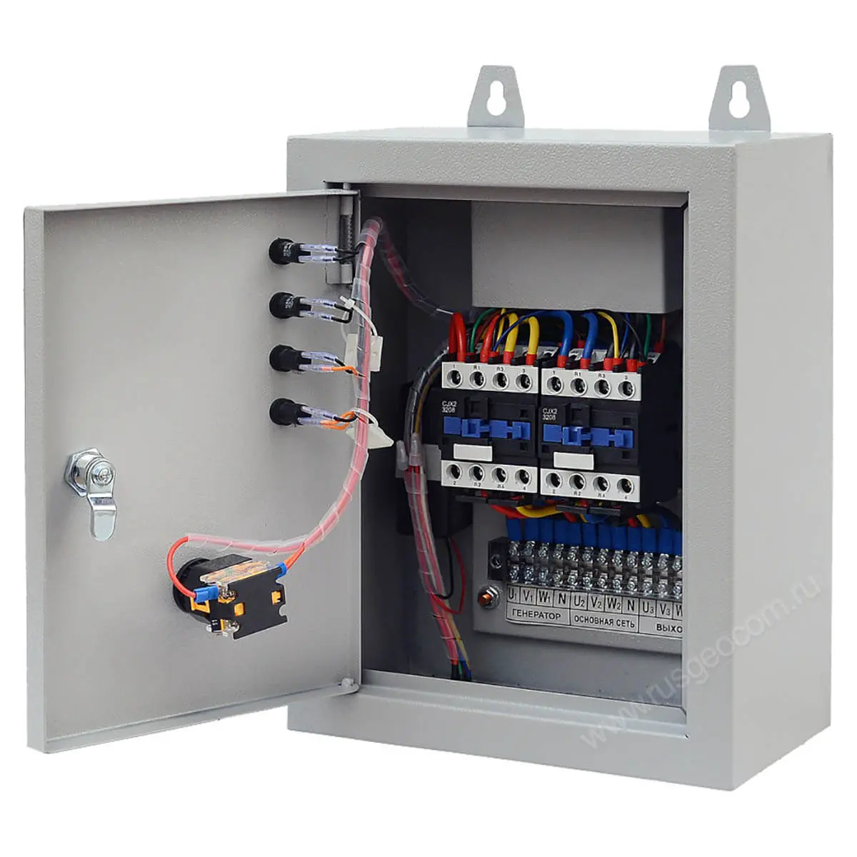 На корпусе предусмотрены прочные металлические петли для монтажа на стену, а в комплект входит кабель, при помощи которого оборудование можно легко подключить к генератору.