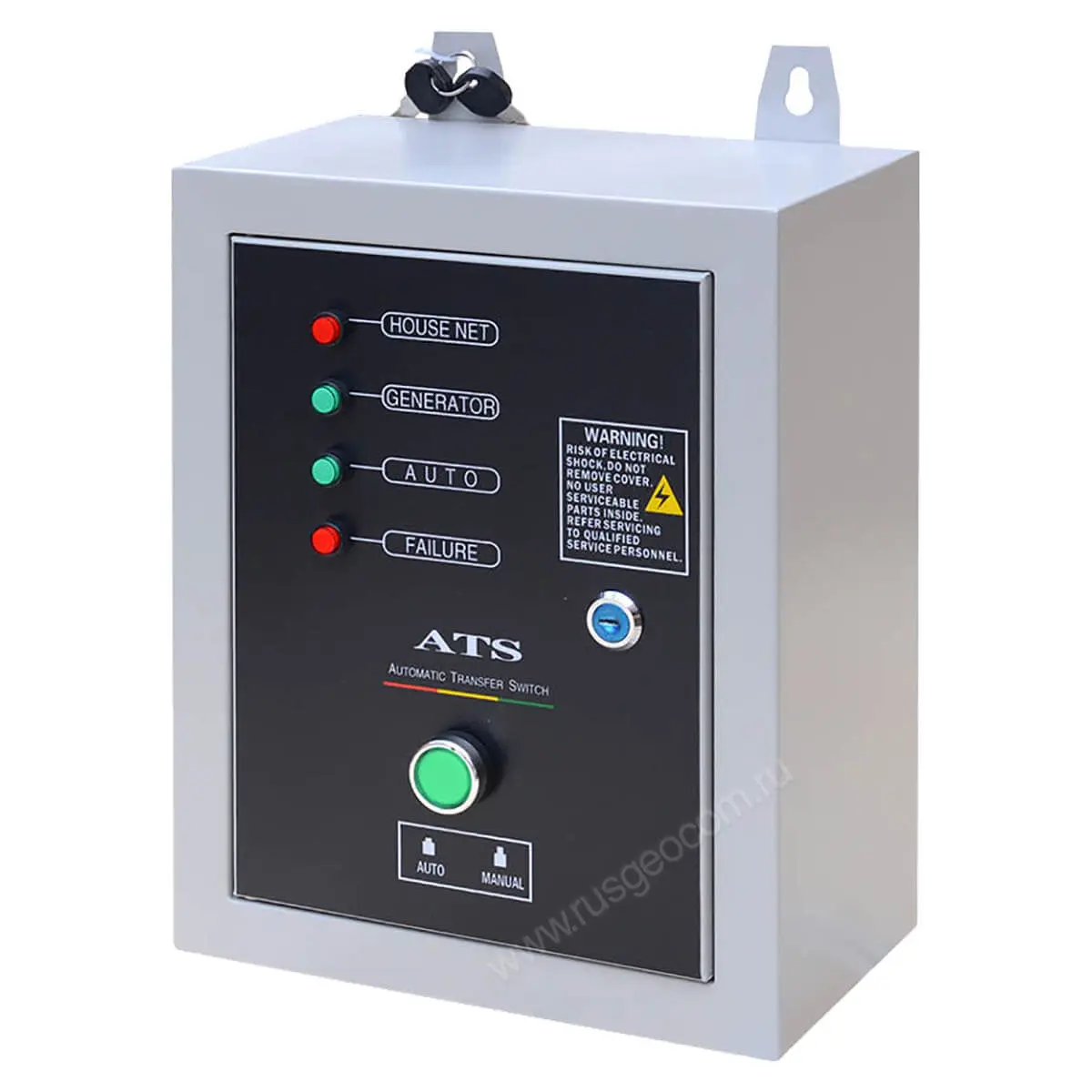 Коммутационное оборудование АВР-С ТСС 12000/400 заключено в металлический кожух, который защищает электронику от пыли и воды. Кожух, при необходимости, можно закрыть на замок - актуальная функция с учетом того, что внутри расположены провода под напряжением. Кроме того, такая особенность поможет предотвратить нежелательный доступ.