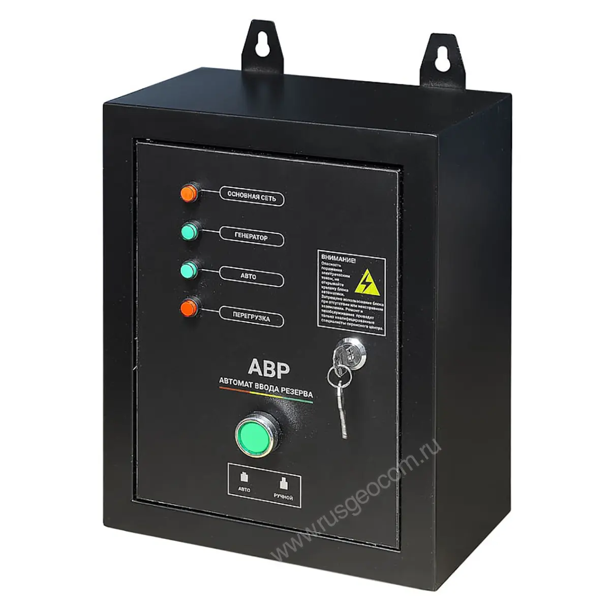 Блок АВР-С TSS 9000D/230/400 представляет собой выносное устройство управления, предназначенное для реализации функций автоматического ввода резерва. В случае перебоев в электроснабжении оно задействует цепи активации автономного источника энергии и переключает на него питание потребителей после выхода на рабочий режим. При восстановлении нормальной работы централизованной электросети автоматика выполняет обратное переключение нагрузок и останавливает резервный генератор TSS.