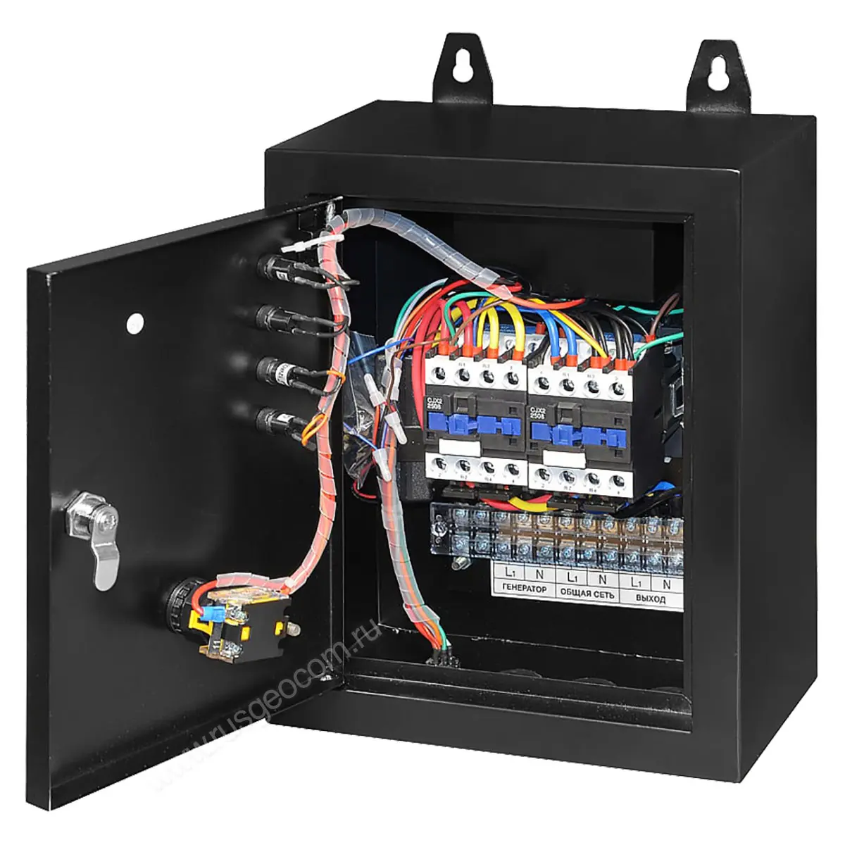 Главным преимуществом блока управления АВР-С TSS 9000D/230/400 является универсальность – устройство можно применять как в однофазных, так и трехфазных системах резервирования питания; оно также подходит для совместной работы с электростанциями с переключаемой мощностью. В качестве силового коммутационного узла блок оборудован двумя 4-линейными электромагнитными контакторами CJX2, рассчитанными на 25-амперную нагрузку. Для управления работой системы автозапуска служит встроенный цифровой контроллер.
