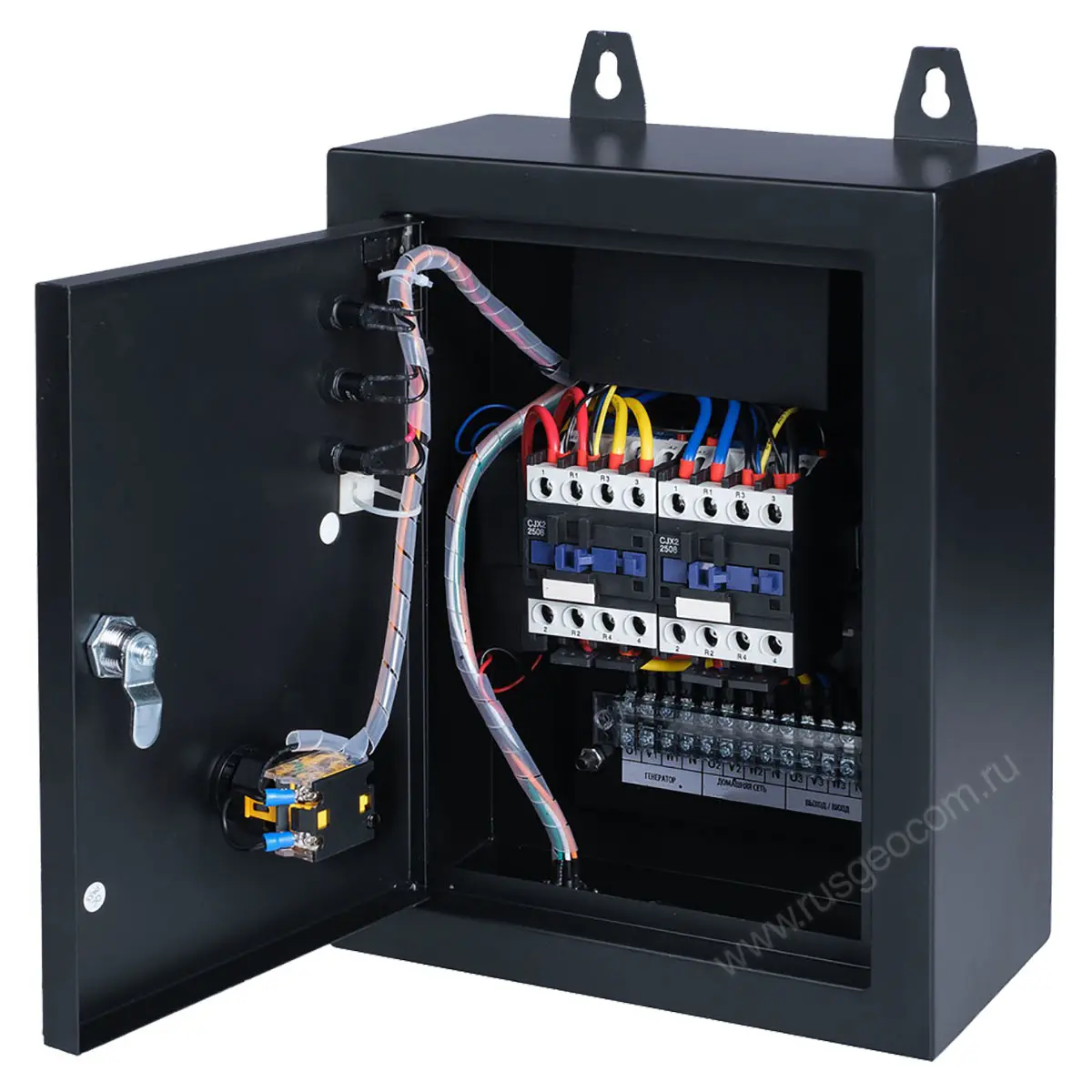 Встроенным контроллер отслеживает уровень напряжения в стационарной энергосистеме и дает команду на запуск генератора Hyundai при перебоях в централизованном электроснабжении и его остановку при нормализации ситуации. Кроме того, оборудование управляет переключением питания потребителей на основной или резервный источник переменного тока. В отличие от модификации ATS 10-380, у данной модели для подключения к генератору используется 6-контактное соединение.