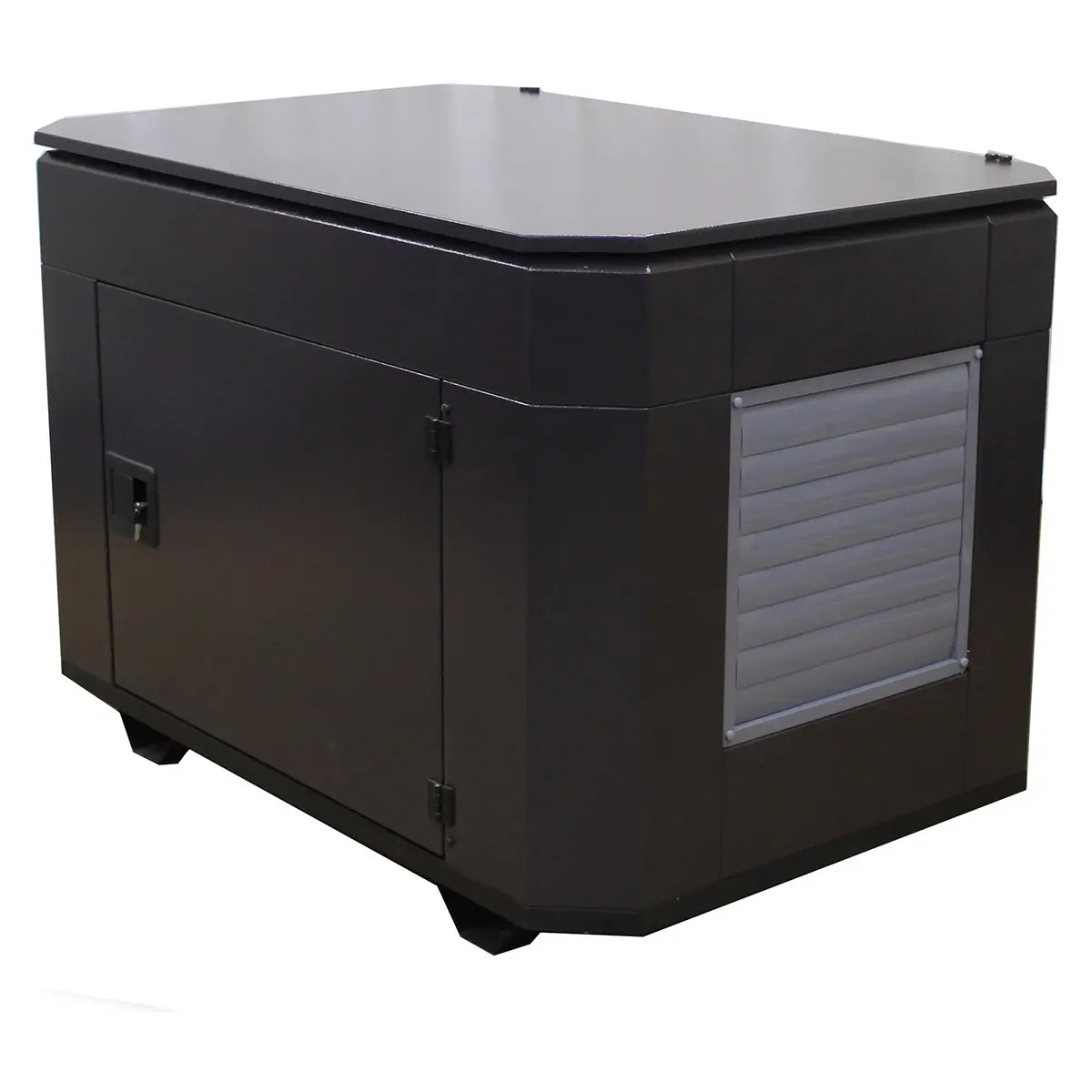 Основной материал кожуха для генератора - оцинкованная сталь толщиной 1,5 мм, которая абсолютно не подвержена коррозии и устойчива к повреждениям. Цинковое покрытие на металле не стандартное, а особое, выполненное методом цинкования с хроматированием. За счет этого значительно повышается стойкость порошковой краски. Покупатель может выбрать любой цвет корпуса и крышки из каталога RAL, чтобы контейнер идеально сочетался с домом, забором и другими постройками на участке.