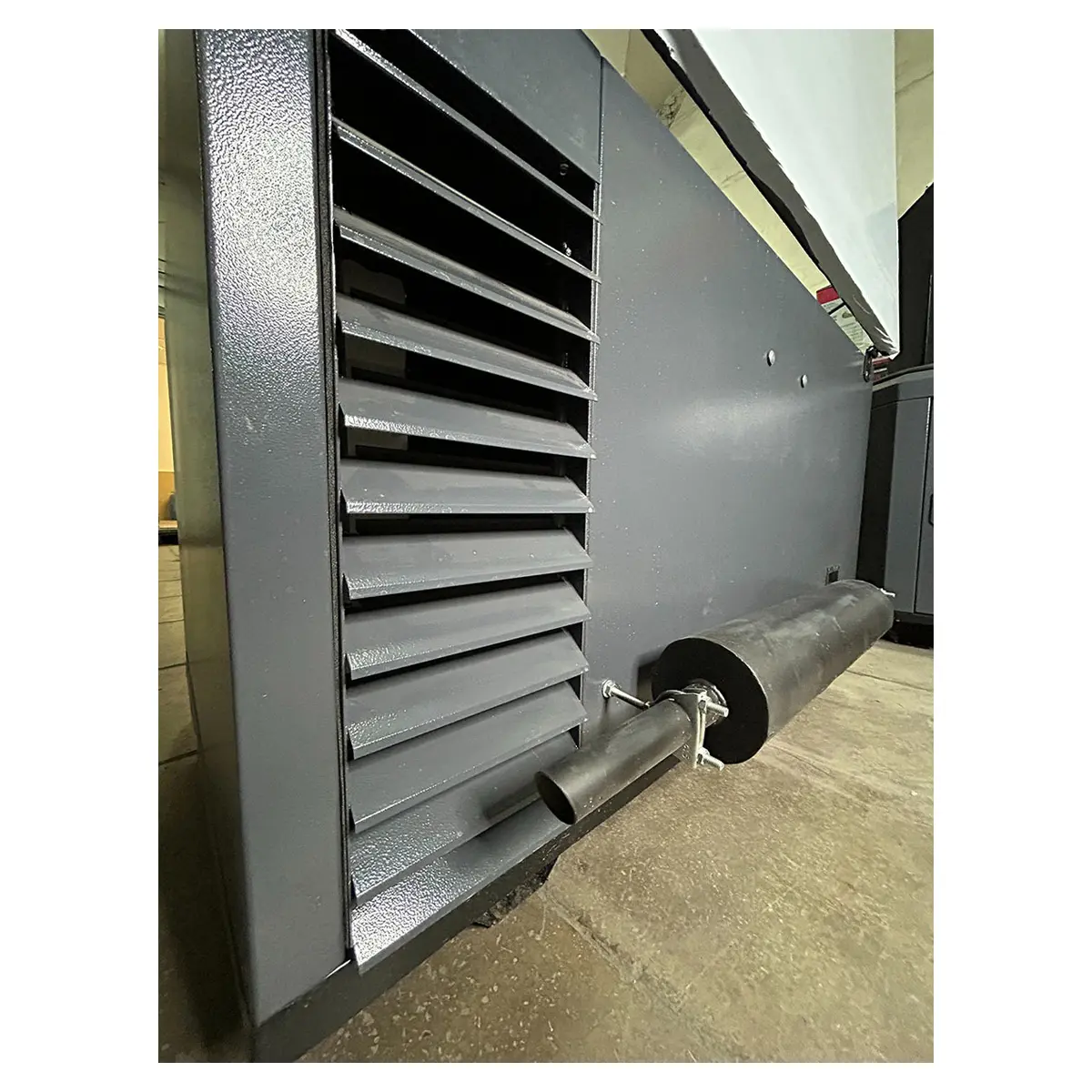Крышка кожуха для генератора 1570SS изнутри покрыта синтетическим каучуком толщиной 30 мм, этот материал отвечает за шумоизоляцию и утепление. Каучук более устойчив к повреждениям и лучше сохраняет тепло, чем минеральная вата. Он не крошится, не деформируется, не горит и не впитывает влагу.