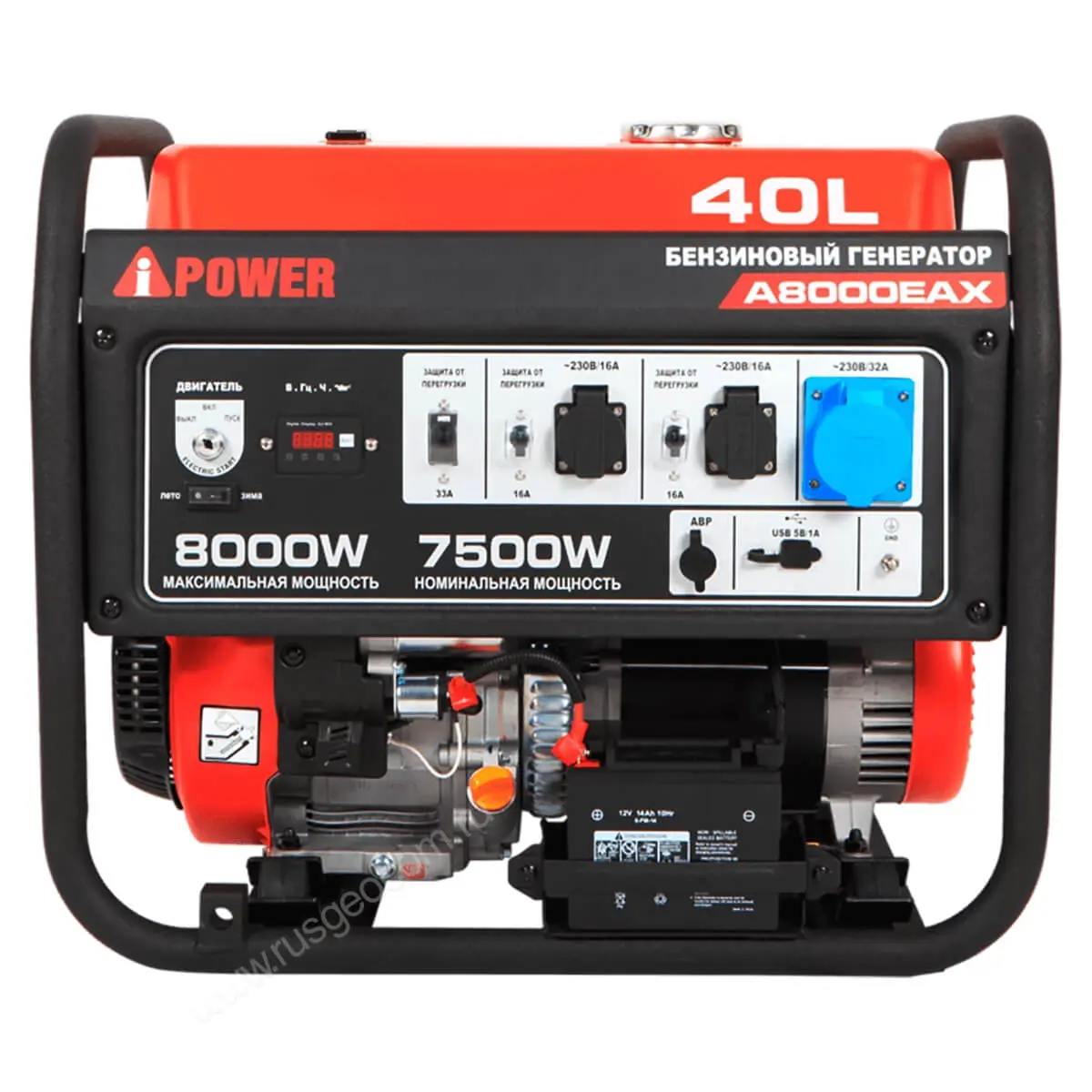 Бензиновый генератор A-iPower A8000EAX - надежный источник питания мощностью 7.5 кВт. Главные преимущества модели - до 10 часов работы на одном баке топлива и возможность подключения высоко индуктивных приборов с пусковой мощностью до 15 кВA.