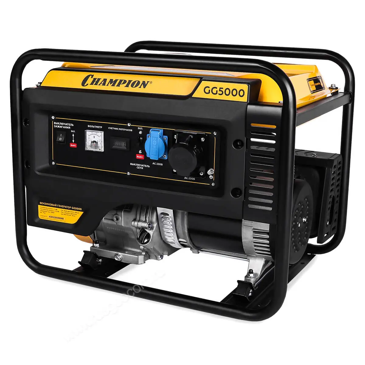 Бензиновый генератор Champion GG5000 – надежный агрегат китайского бренда Champion, разработанный для бытового использования. Техника характеризуется низким расходом топлива и стабильной работой. Предназначена для снабжения питанием электричеством приборов с суммарной мощностью до 5,5 кВт. Подходит для загородных домов и дач, может использоваться на природе во время походов и пикника.