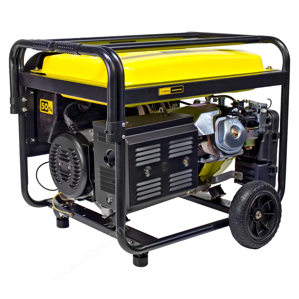 Электрогенератор работает на бензине, а его топливный бак вмещает до 25 литров бензина. Верхнее расположение бака обеспечивает удобство при заправке и позволяет аппарату работать длительное время без необходимости дозаправки.
