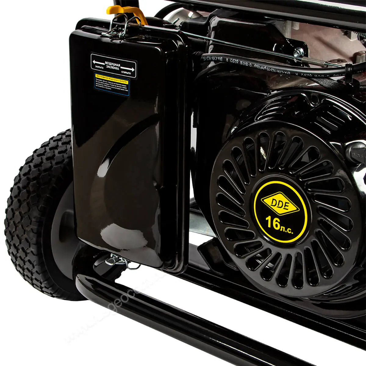 Для повышенной безопасности и удобства перемещения установка комплектуется защитной рамой и колесами с протектором. Рама защищает от механических воздействий и служит устойчивым основанием, а колеса облегчают перемещение техники по различным поверхностям.