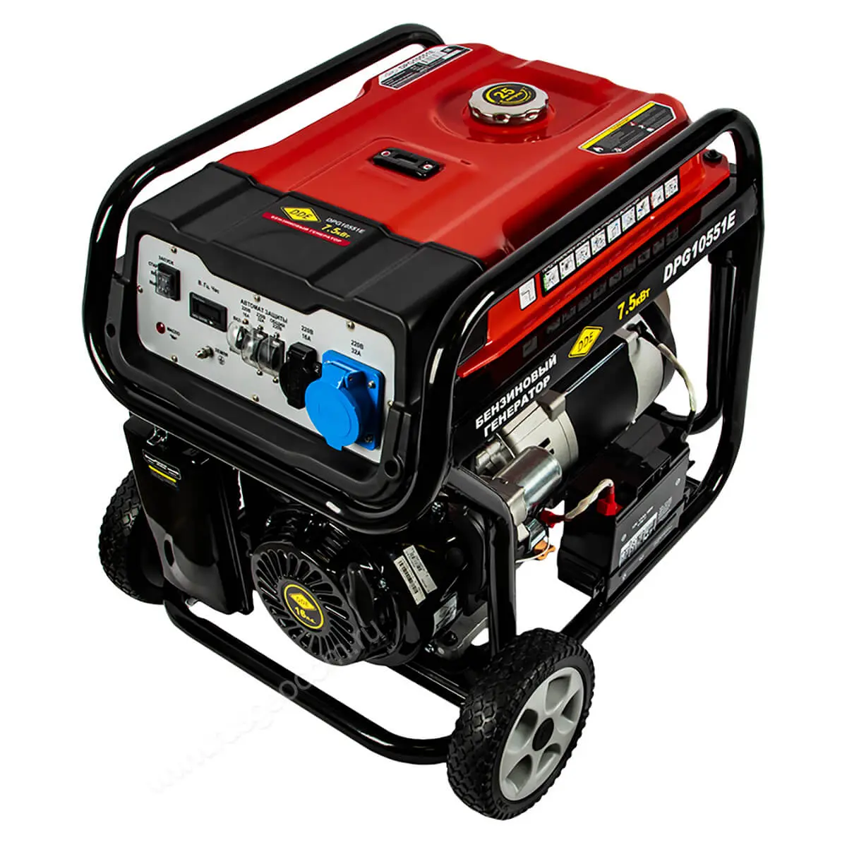 Бензиновый генератор DDE DPG10551E - надежное и удобное решение для питания однофазных потребителей мощностью до 7,5 кВт. Он отличается высокой производительностью, экономичностью и простотой использования, что делает его привлекательным выбором для различных задач. Индекс Е в названии модели означает, что в конструкции предусмотрен электростартер, который обеспечивает быстрый и легкий запуск двигателя.