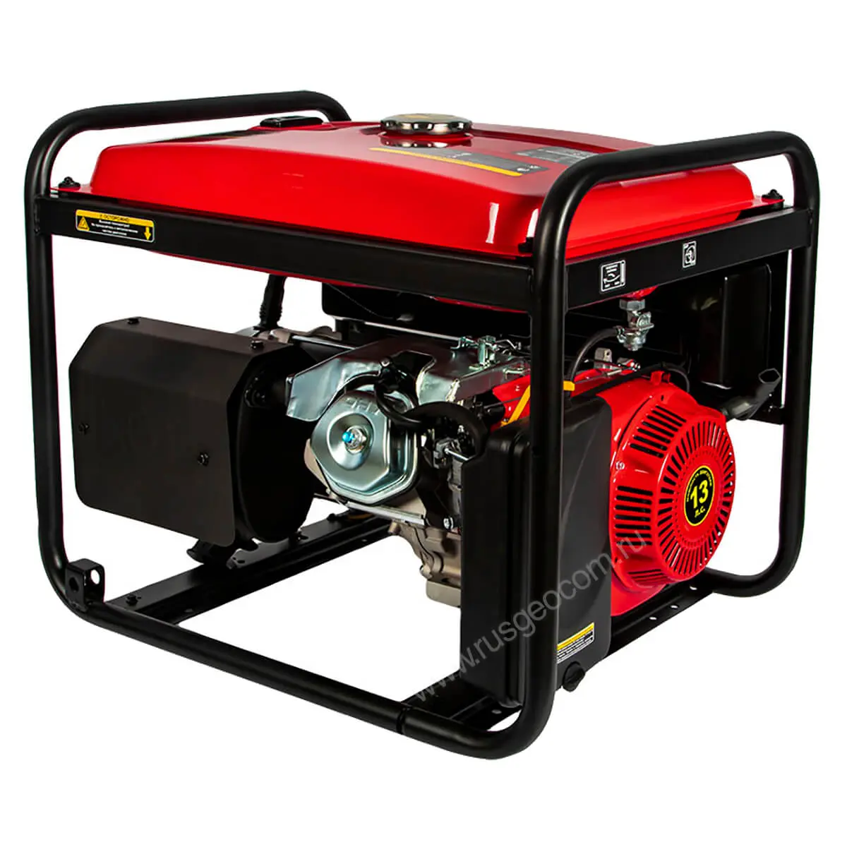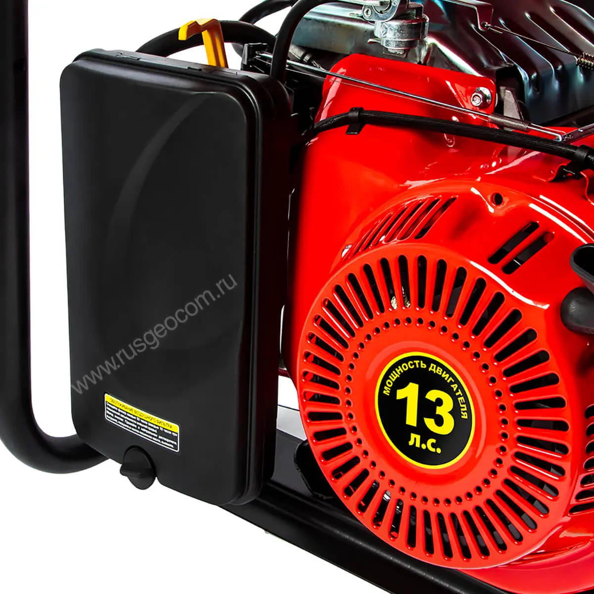 Бензиновый генератор оснащен мощным 13-сильным двигателем и топливным баком на 25 литров, что обеспечивает до 9,5 часов бесперебойной работы бытовой техники, инструментов и осветительных приборов. Запуск осуществляется с помощью ручного стартера, а для подключения потребителей предусмотрены розетка 220 В и порт для зарядки гаджетов 12 В.