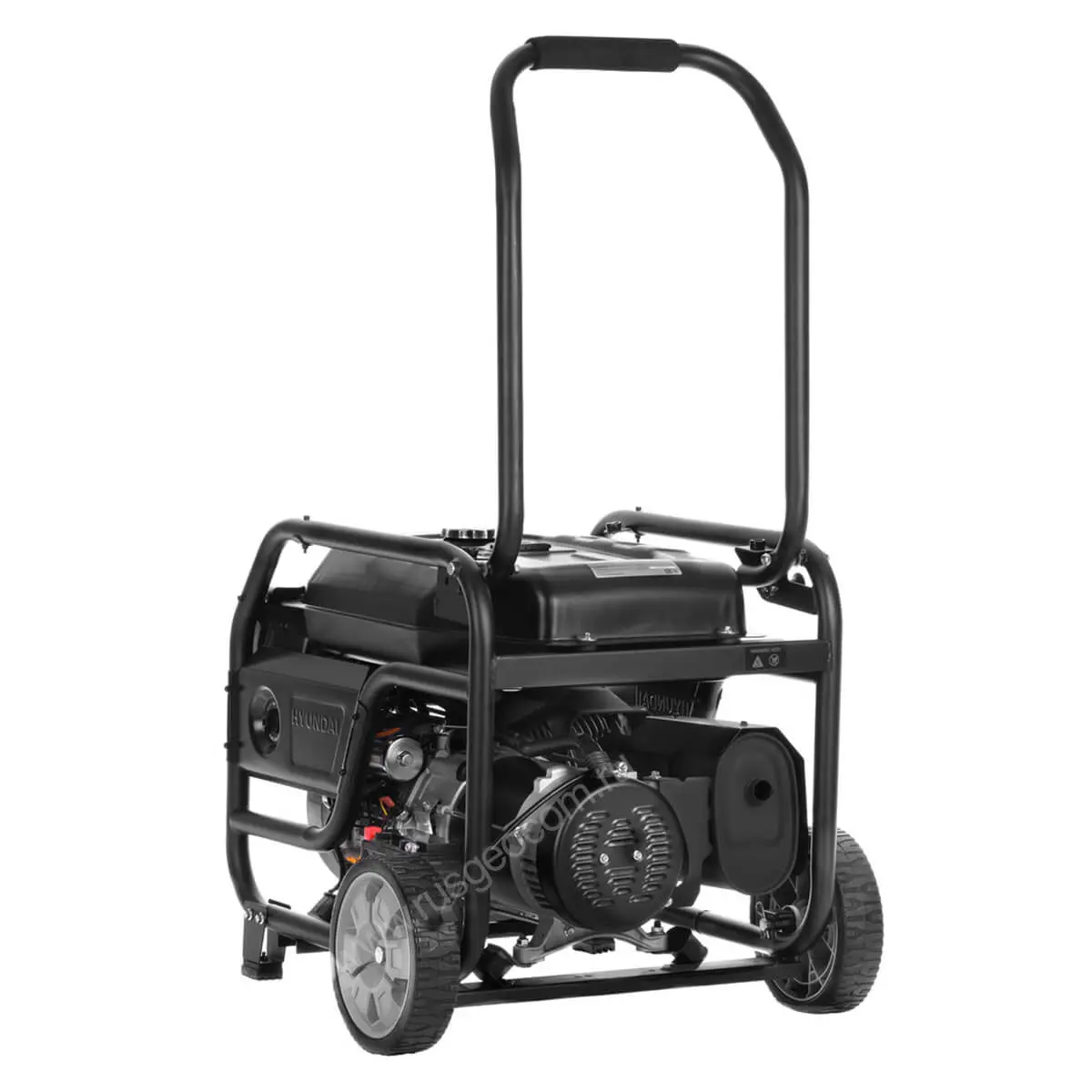 Транспортировочный комплект, который состоит из колес и прочной откидной ручки, упрощает перемещение Hyundai HHY 10050FE-3 ATS по объекту и погрузочно-разгрузочные операции. Также в конструкции предусмотрены упоры с резиновыми подушками, которые эффективно гасят вибрацию двигателя и препятствуют опрокидыванию.