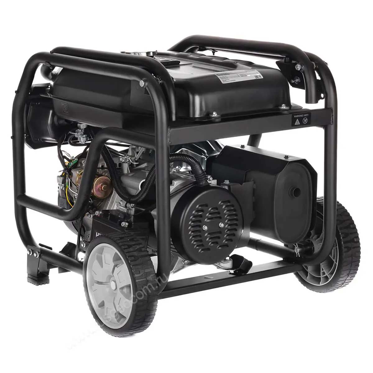 Все узлы надежно защищены прочной стальной рамой из трубы 32 мм. Рама окрашена порошковым методом, что гарантирует долговечность, и оснащена амортизационными подушками, гасящими вибрации. На похожих подушках установлен двигатель генератора Hyundai HHY 9050FE ATS; уменьшение вибрационных нагрузок положительно сказывается на его сроке службы.