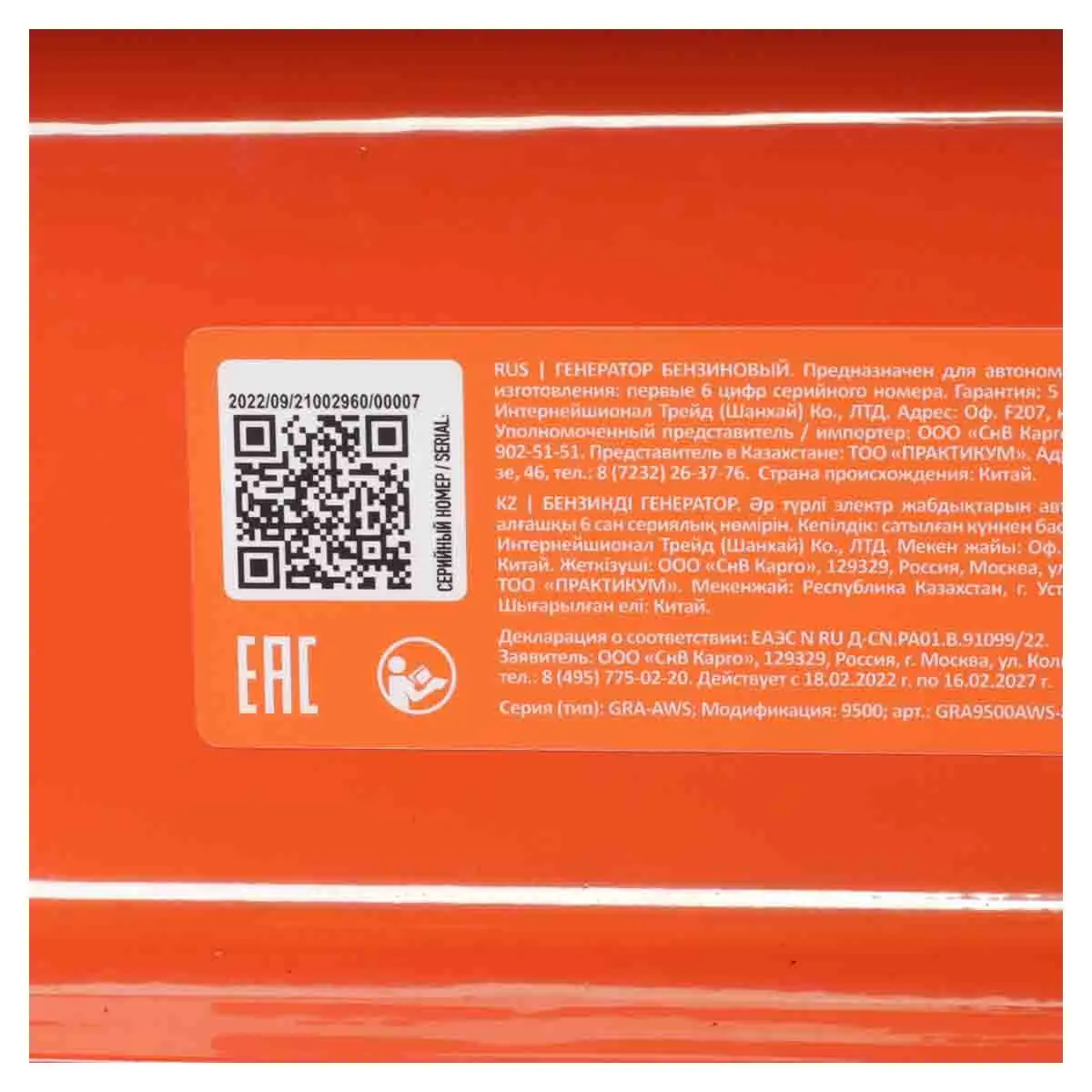 Patriot GRA 9500AWS также оснащен надежным регулятором напряжения AVR и медной обмоткой альтернатора, что позволяет выдерживать кратковременные перегрузки в 3 раза для работы с мощным электроинструментом. Это делает такую модель идеальным выбором для строительных работ и других задач, требующих высокой мощности.