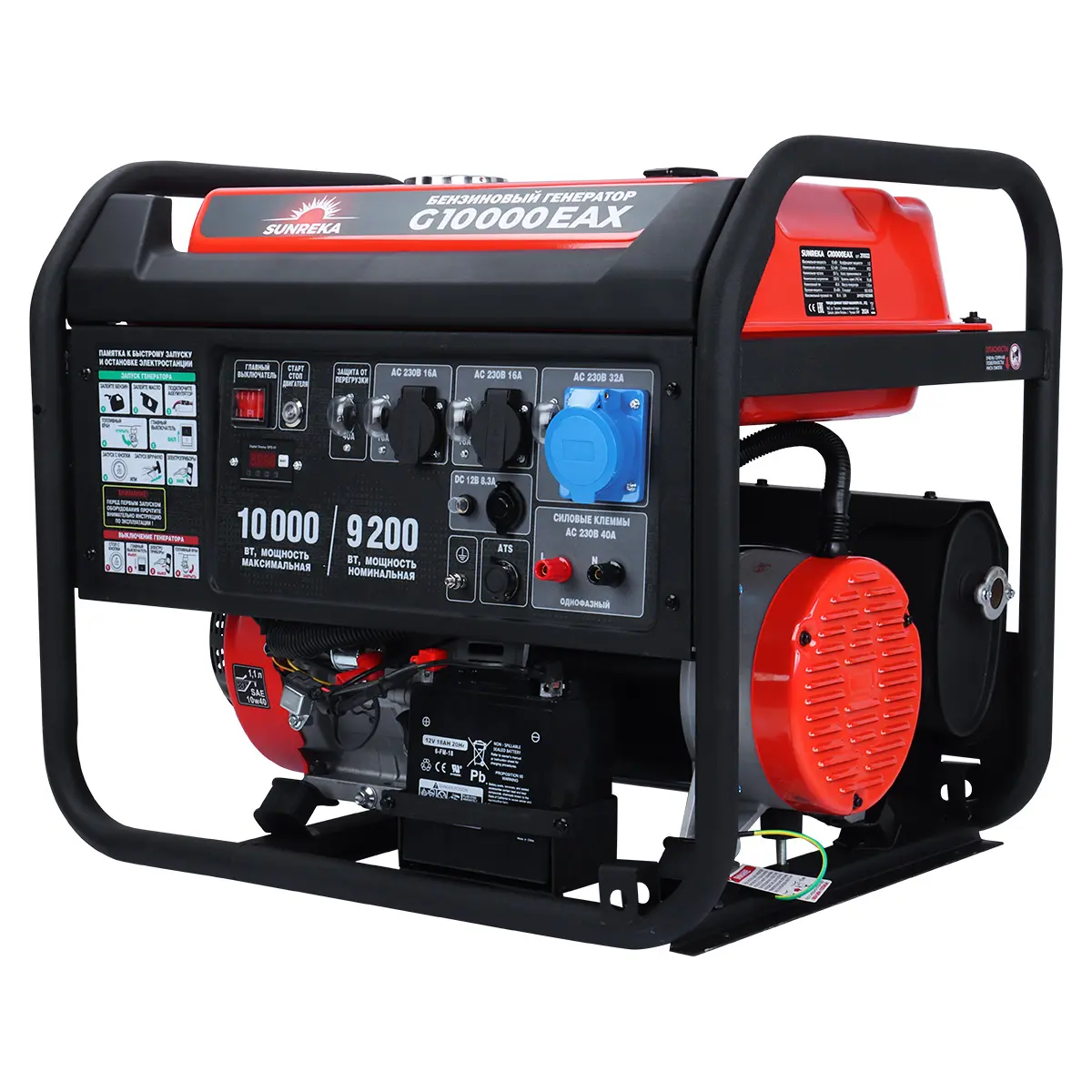 Генератор G10000EAX номинальной мощностью 9,2 кВт с возможностью организации автоматического ввода резерва идеально подходит в качестве резервной установки для обеспечения непрерывного электроснабжения загородного дома, мастерской, автосервиса. Также, его мощность, надежность и функционал покрывают все необходимые потребности для использования в качестве электростанции для коммунальных, аварийных и строительных работ: функция высоких пусковых токов обеспечит стабильность запуска компрессоров, сильно нагруженного инструмента и строительного оборудования.
