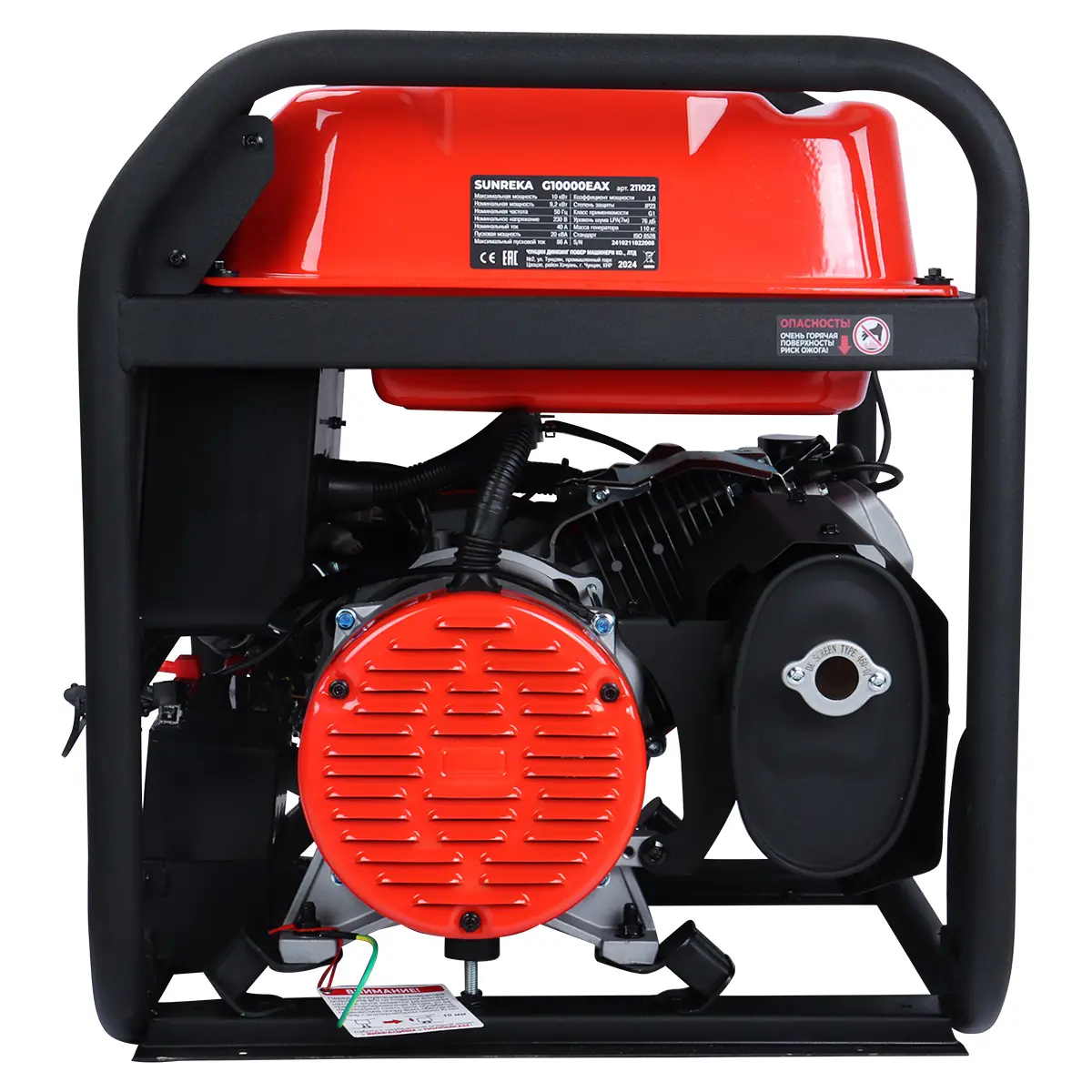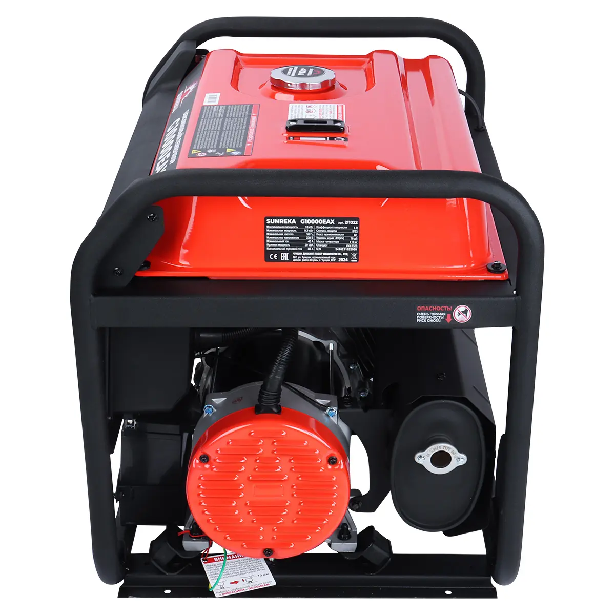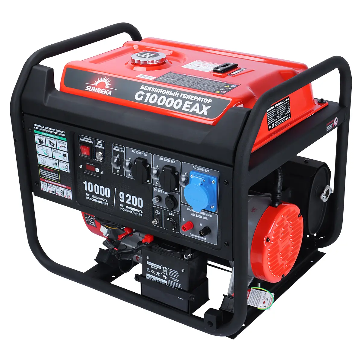 Двигатель генератора G10000EAX рабочим объемом 520 см3 и мощностью 19 л.с. оснащается электростартером и сменной аккумуляторной батареей для запуска с ключа. Генератор запускается быстро и легко даже при низких температурах, работа воздушной заслонки автоматизирована, поэтому управиться с данной моделью под силу даже женщинам и пожилым людям.