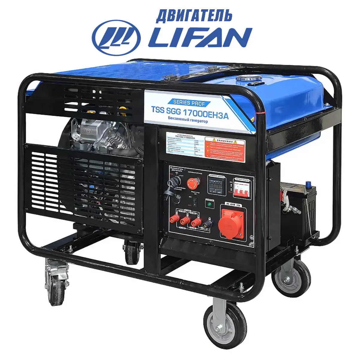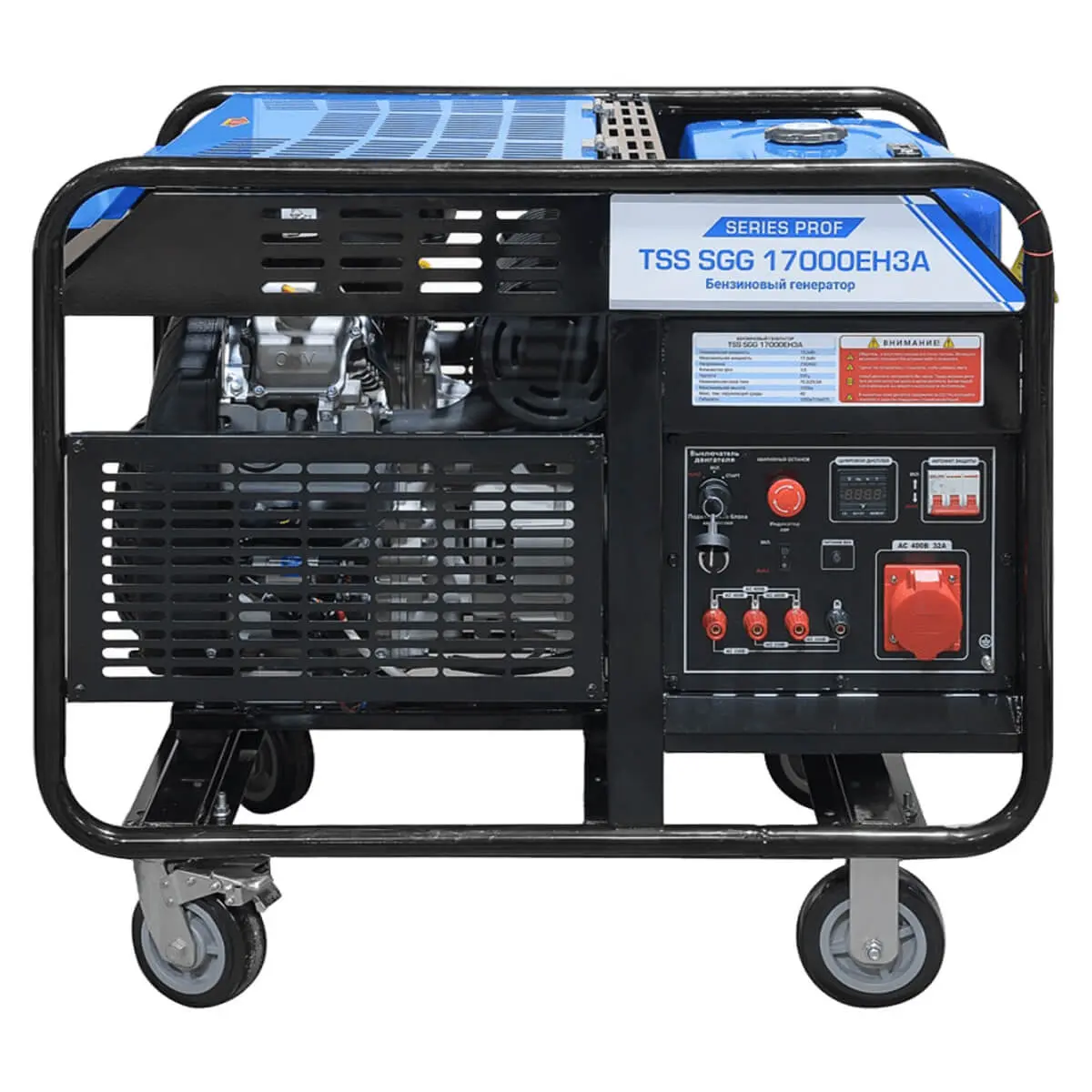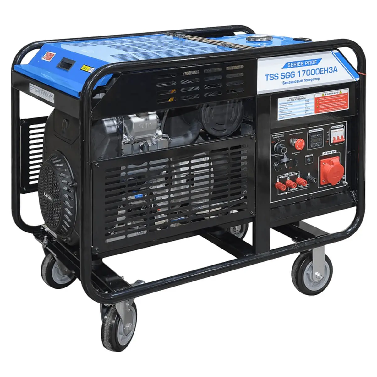 Бензиновый генератор TSS SGG 17000EH3A - одна из самых мощных мобильных трехфазных установок бренда. Эта модель ориентирована исключительно на работу с высоконагруженными потребителями, которые рассчитаны на напряжение питания 380-400 В. Мощности 15.5 кВт будет достаточно для организации бесперебойного энергоснабжения оборудования промышленного класса - станка, подъемника, компрессора или насоса.