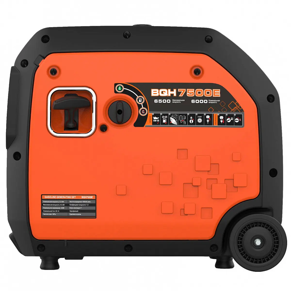 Zongshen BQH 7500 E имеет режим экономии топлива, который позволяет оптимизировать расход бензина. Генератор вырабатывает именно столько электроэнергии, сколько необходимо для работы подключенных устройств, что особенно важно при использовании оборудования с высокими пусковыми токами, таких как компрессоры или насосы. Рекомендуется переключать режим ЕСО в выключенное положение при запуске таких устройств, чтобы избежать перегрузки.