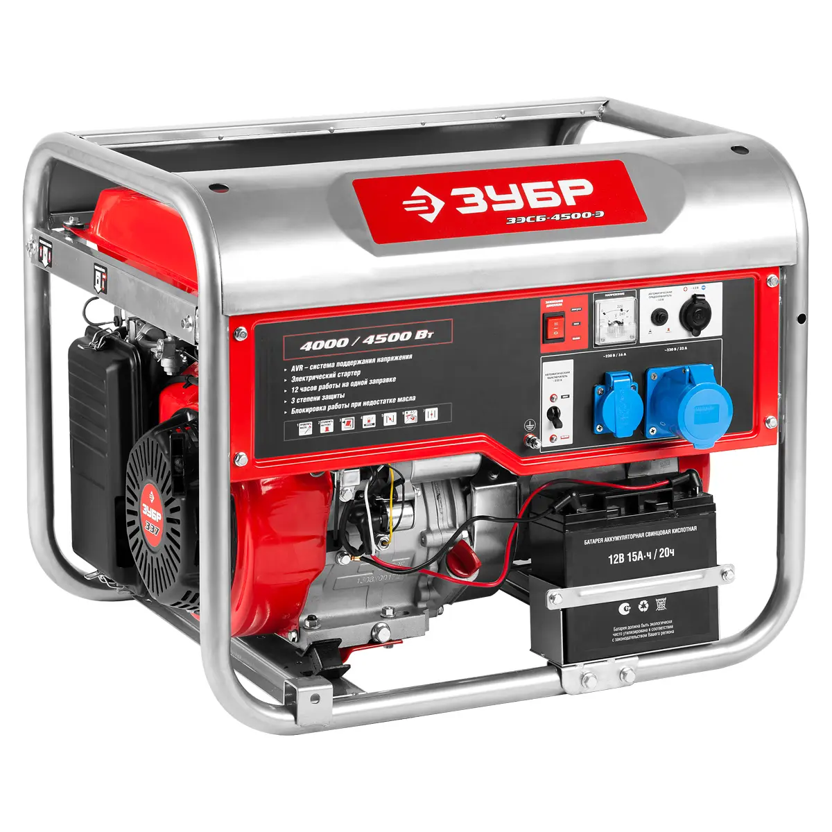 Купить бензиновый генератор ЗУБР ЗЭСБ-4500-Э, а также получить консультацию специалистов об особенностях и преимуществах данного изделия вы можете в нашем магазине , связавшись с нами по телефону или непосредственно через сайт – с помощью формы обратной связи или воспользовавшись чатом с онлайн-консультантом.