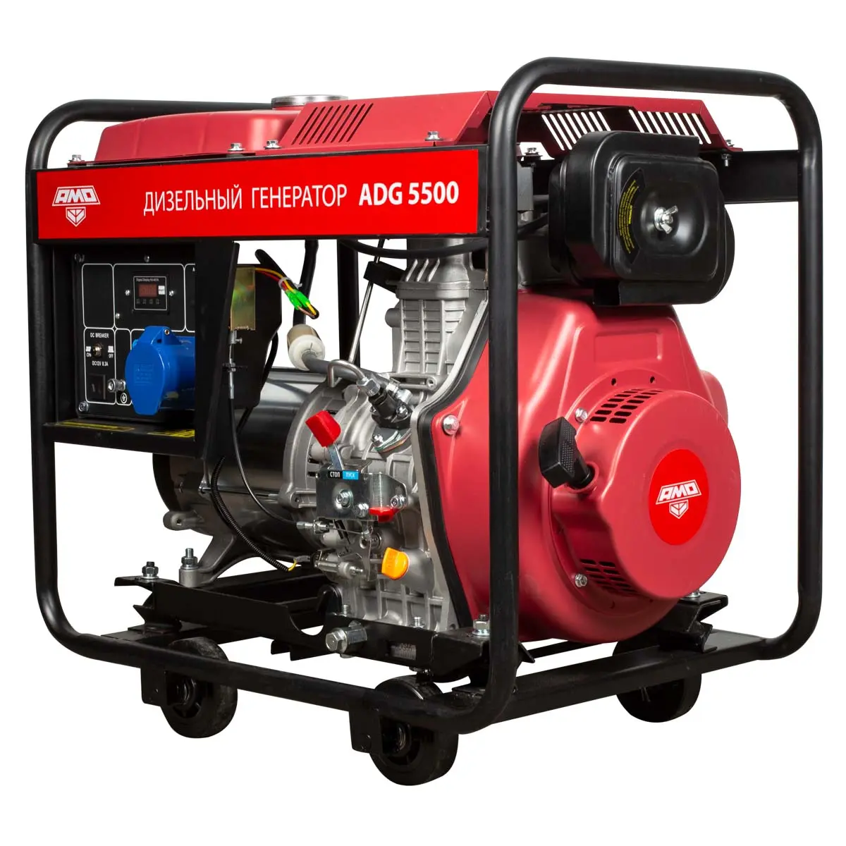Дизельный генератор AMO ADG 5500 - автономная мобильная электростанция мощностью 5 кВт, которая подходит для выездной работы с однофазными инструментами, а также может закрыть все потребности небольшой мастерской или торгового объекта в электроэнергии. По сравнению с бензиновым, дизельный генератор отличается экономичностью и больше ориентирован на длительную непрерывную эксплуатацию.
