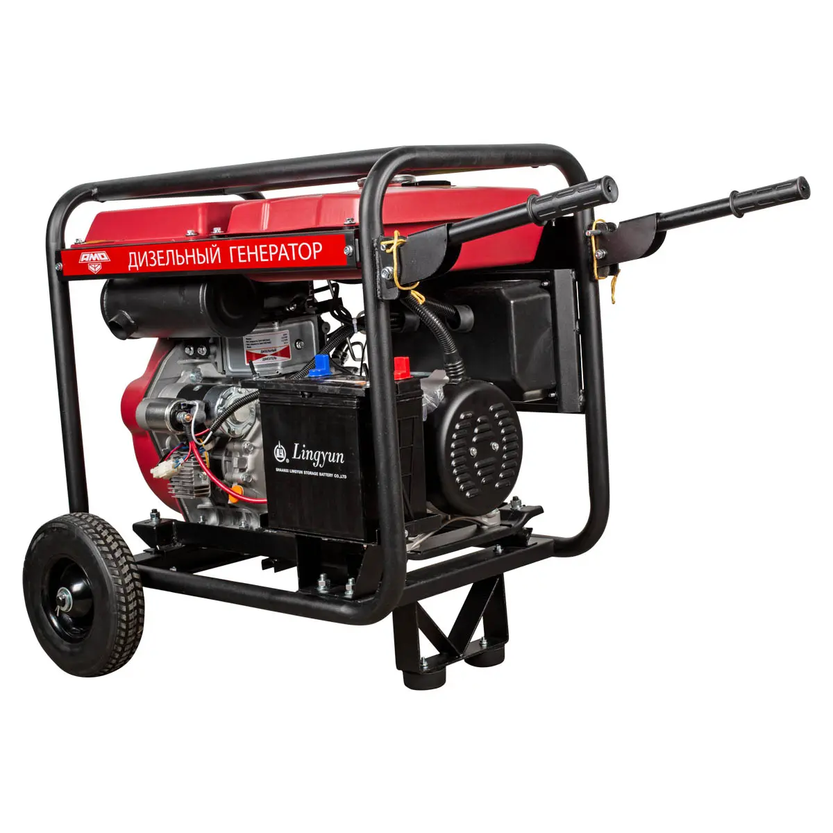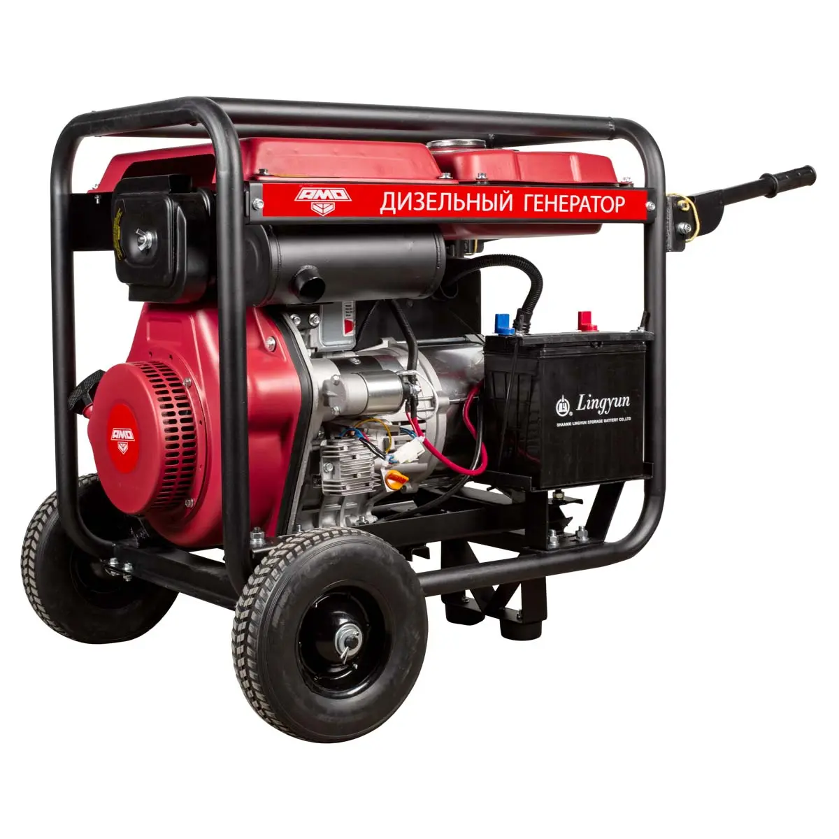 Дизельный генератор AMO ADG 5500E - автономная мобильная электростанция мощностью 5 кВт, которая подходит для выездной работы с однофазными инструментами, а также может закрыть все потребности небольшой мастерской или торгового объекта в электроэнергии. По сравнению с бензиновым, дизельный генератор отличается экономичностью и больше ориентирован на длительную непрерывную эксплуатацию.