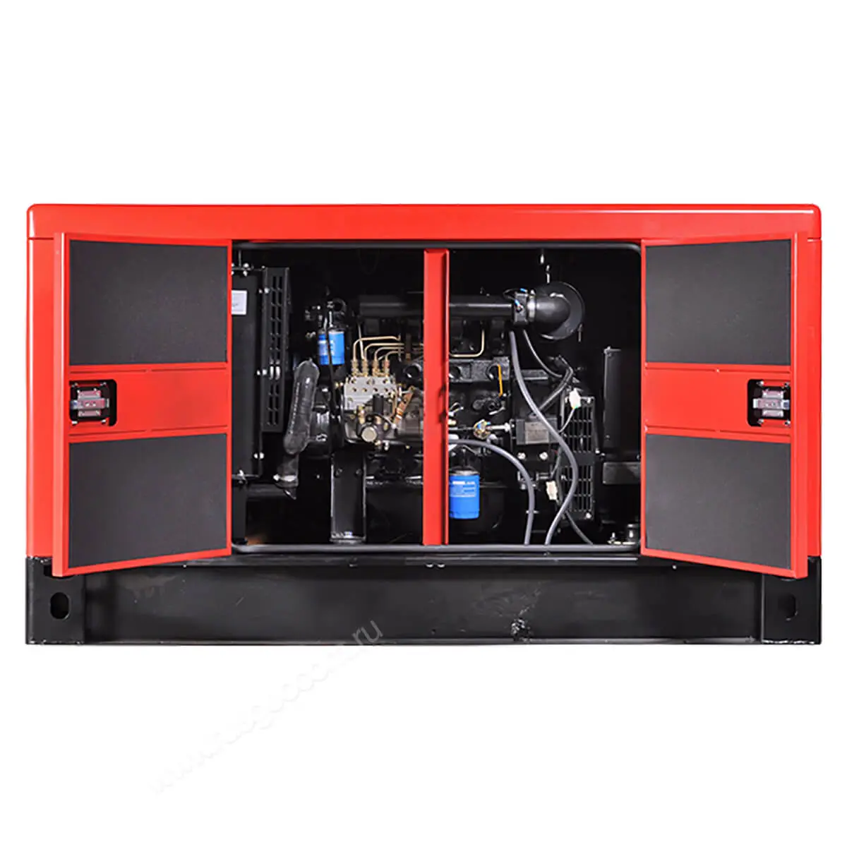 Дизельный генератор построен на базе четырехцилиндрового дизельного двигателя с рядным расположением цилиндров. Такой подход обеспечивает надежную и стабильную работу устройства. Двигатель оснащен системой непосредственного впрыска топлива, что способствует более эффективному сгоранию и снижению расхода топлива. Кроме того, жидкостное охлаждение позволяет поддерживать оптимальную рабочую температуру, что особенно важно при длительной эксплуатации.