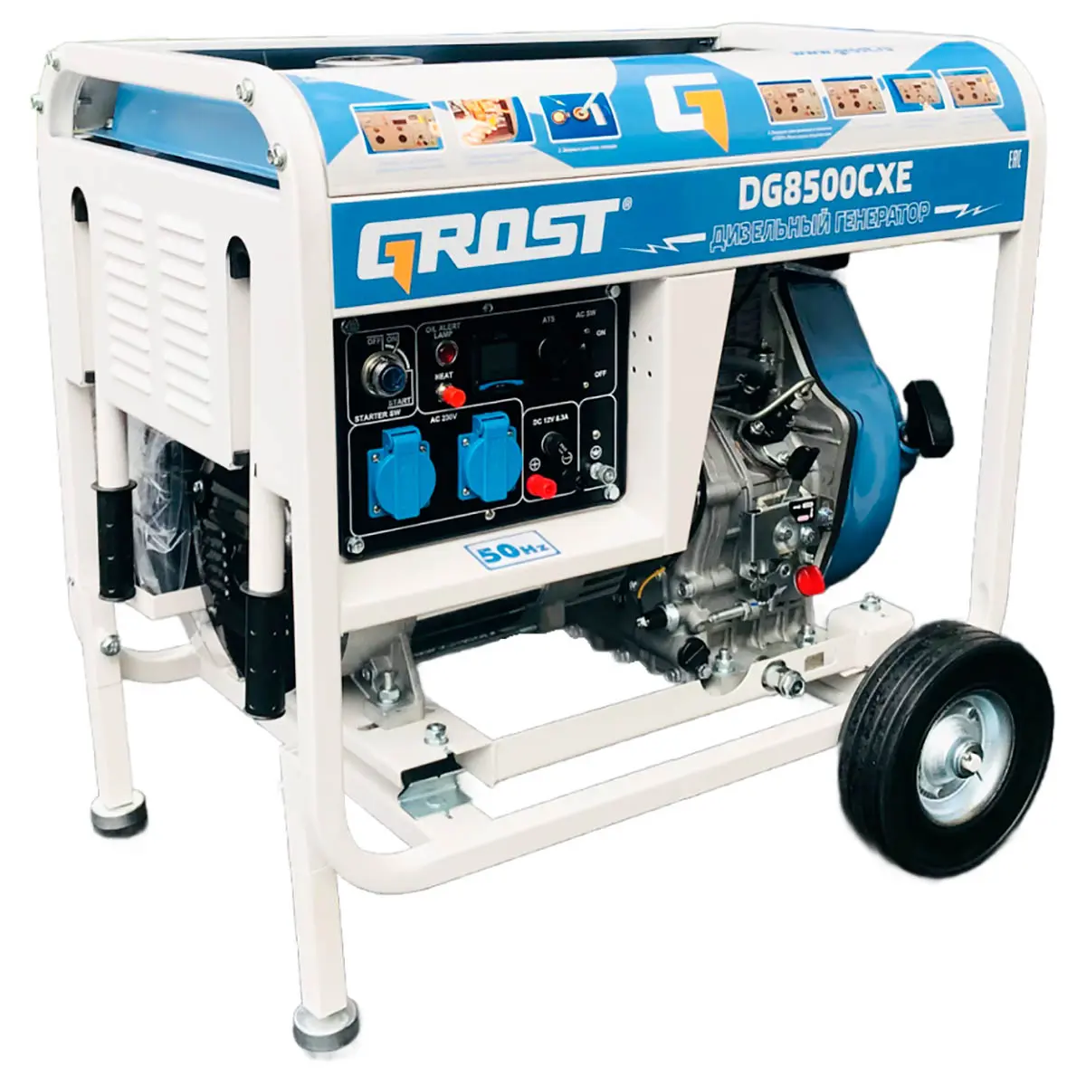Купить дизельный генератор GROST DG8500CXE, а также получить консультацию специалистов об особенностях и преимуществах данного изделия вы можете в нашем магазине , связавшись с нами по телефону или непосредственно через сайт – с помощью формы обратной связи или воспользовавшись чатом с онлайн-консультантом.