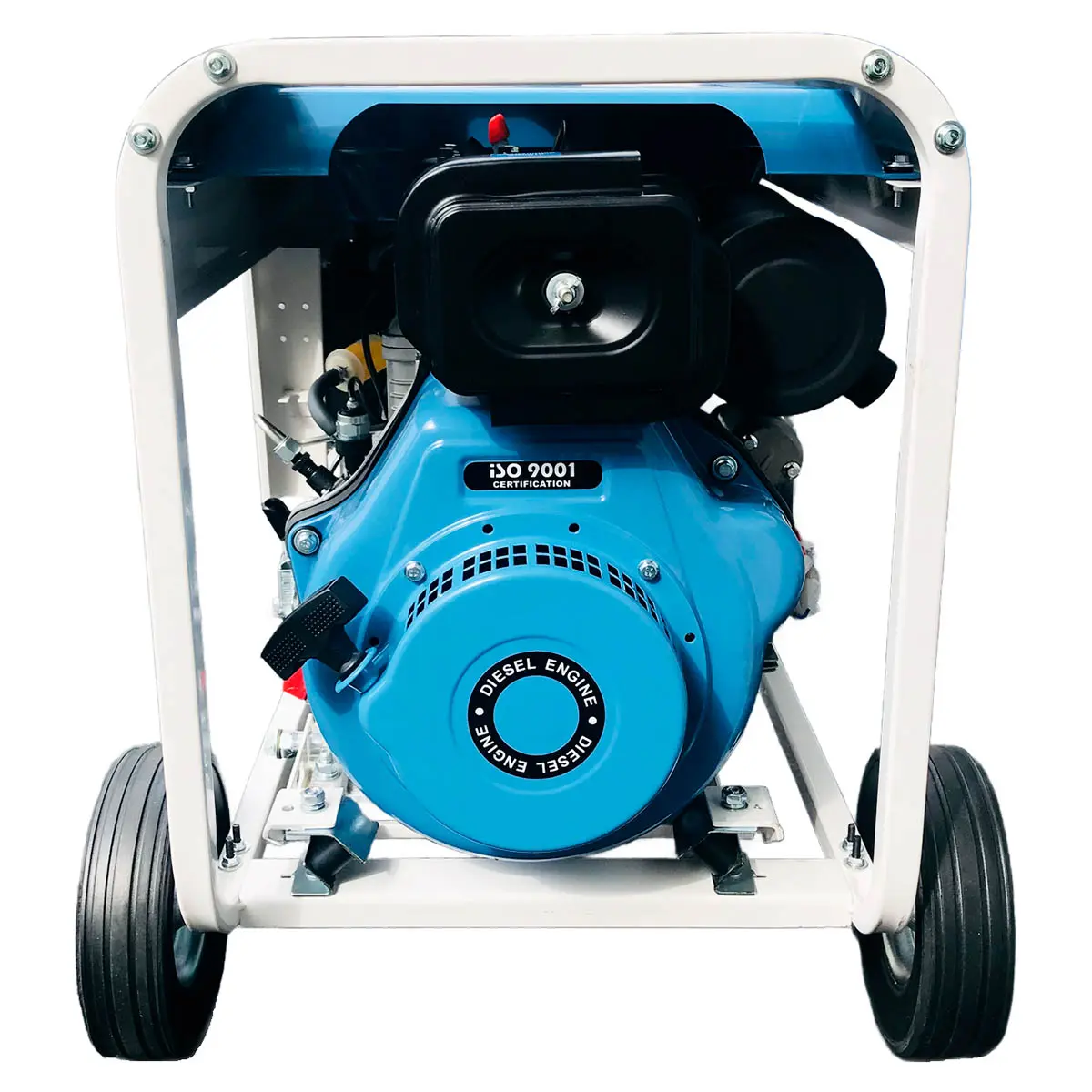 - Открытое исполнение в раме из профиля квадратного сечения обеспечивает легкий доступ ко всем основным узлам и элементам дизельного генератора , упрощая его обслуживание и ремонт.