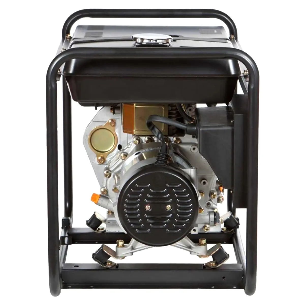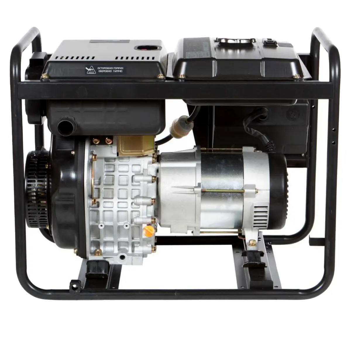 Техника имеет открытый тип конструкции: прочная стальная рама служит одновременно основанием агрегата и защитой узлов от механических повреждений. Агрегат оснащен надежным 4-тактным ДВС с инжекторной системой, отличающейся экономичным расходом топлива. Запуск дизельного генератора выполняется вручную. Благодаря встроенному баку объемом 12,5 л, он может автономно работать до 10 часов, что делает его идеальным для длительных отключений электричества или использования в удаленных местах.