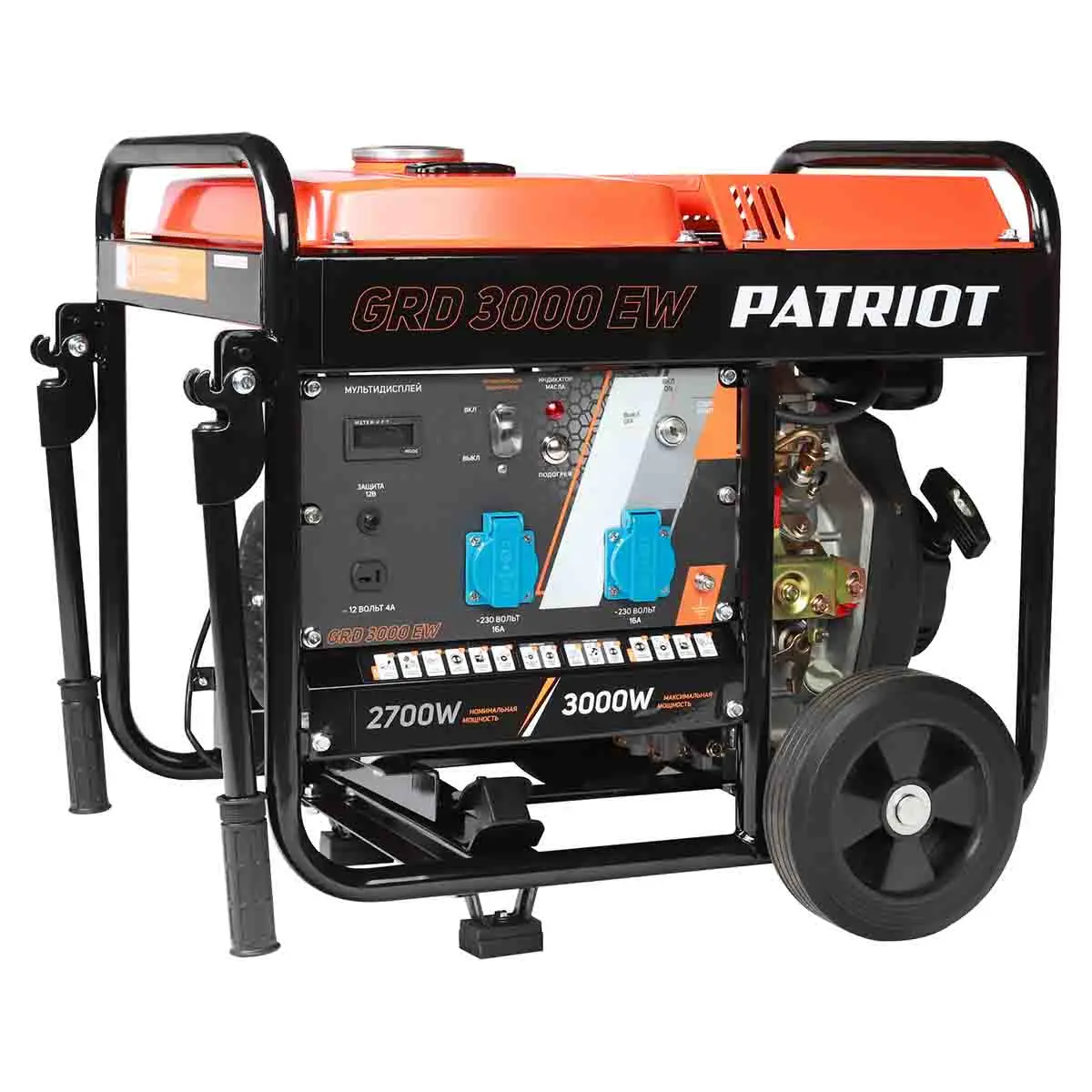 Для удобства контроля и мониторинга работы дизель-генератора, установлен цифровой дисплей 3 в 1. Он позволяет отслеживать межсервисные интервалы, а также контролировать напряжение и частоту. Это очень полезно, так как вы всегда будете в курсе состояния Patriot GRD 3000EW и сможете принимать соответствующие меры в случае необходимости.