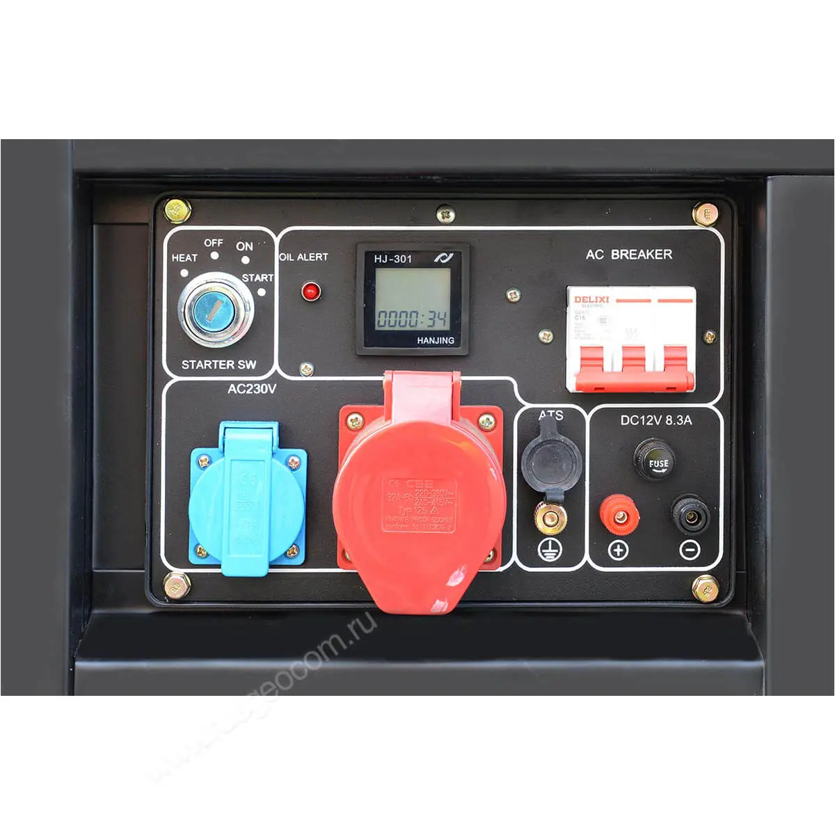 - Силовая розетка 32 А для высоконагруженных приборов, которым требуется полная мощность электрогенератора.