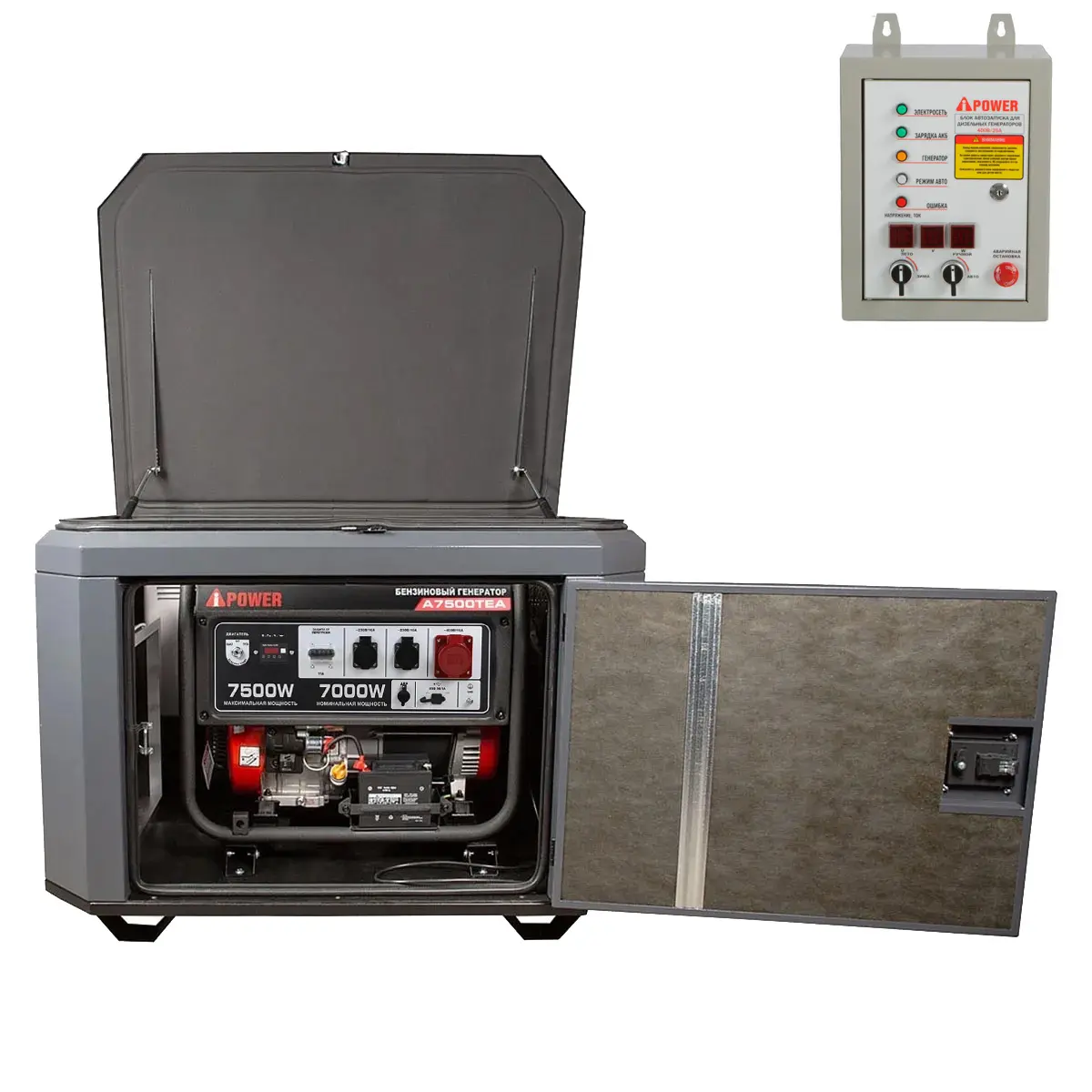 Бензиновый генератор A-iPower A7500TEA в супертихом зимнем кожухе 1400SS RAL 7024 + блок автозапуска A-iPower 400 В, 25 А
