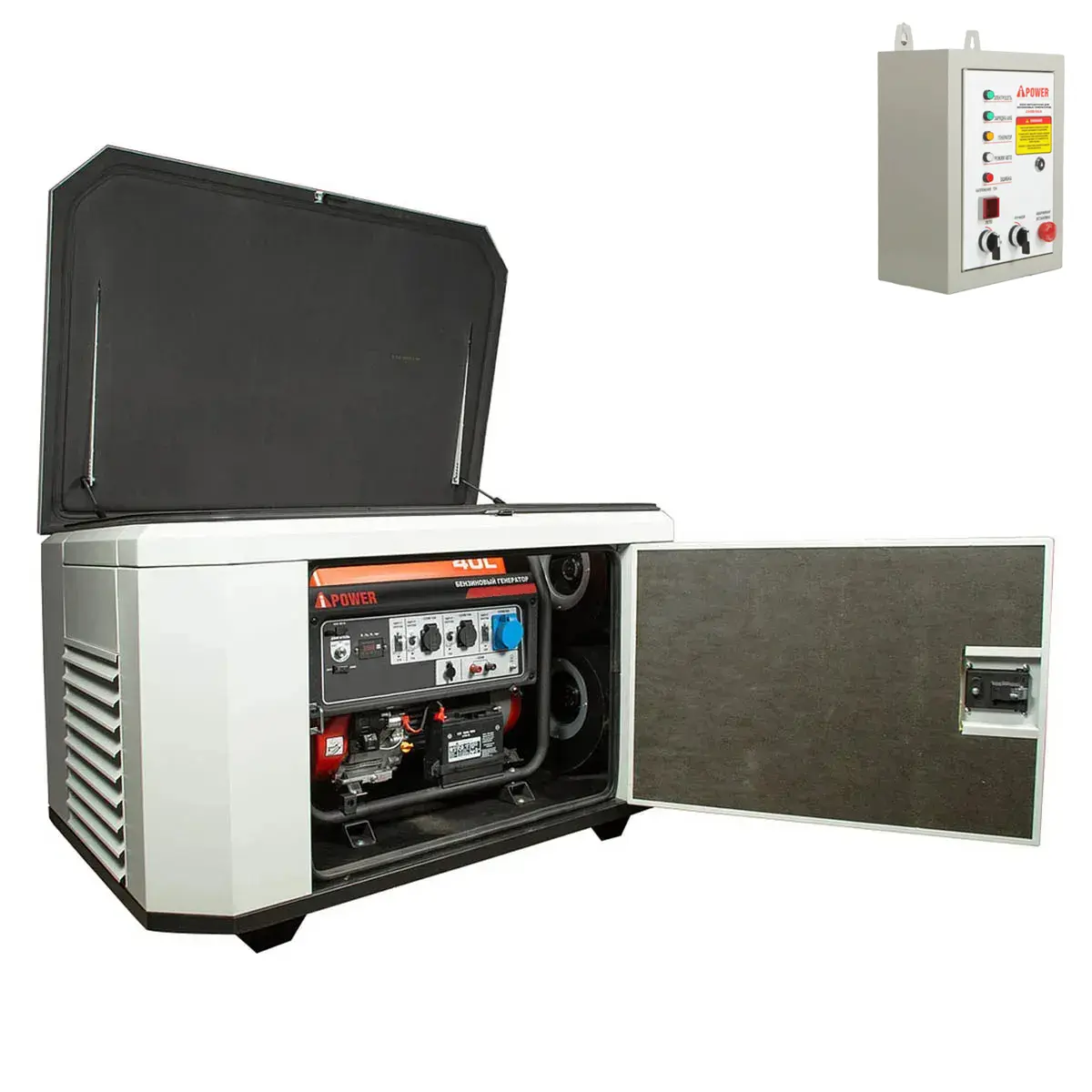Генератор A-iPower A6000EAX в супертихом зимнем кожухе 1400SS RAL 7035 + блок автозапуска A-iPower 230 В, 50 А