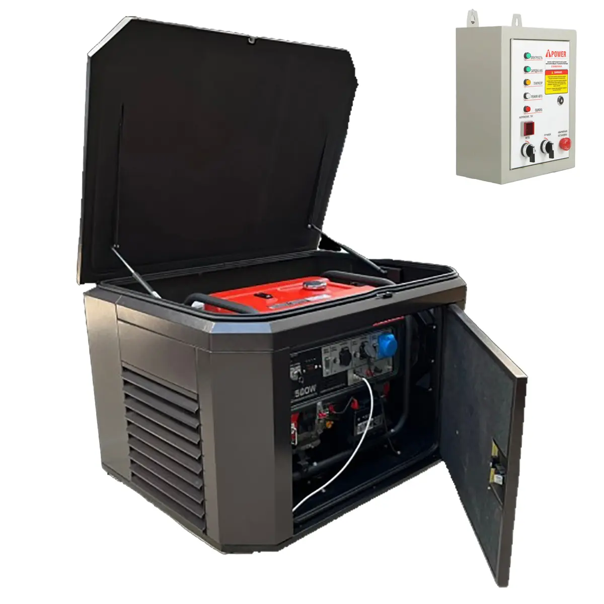 Генератор A-iPower A8000EAX в супертихом зимнем кожухе 1400SS RAL 8019 + блок автозапуска A-iPower 230 В, 50 А