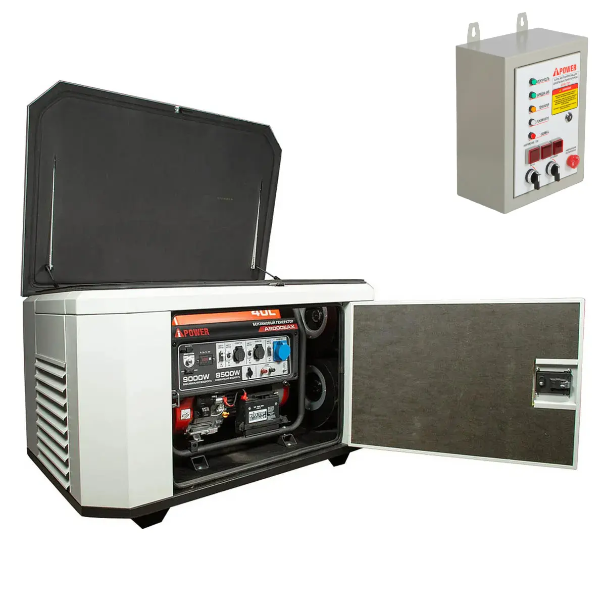 Генератор A-iPower A9000EAX в супертихом зимнем кожухе 1400SS RAL 7035 + блок автозапуска A-iPower 400 В, 25 А