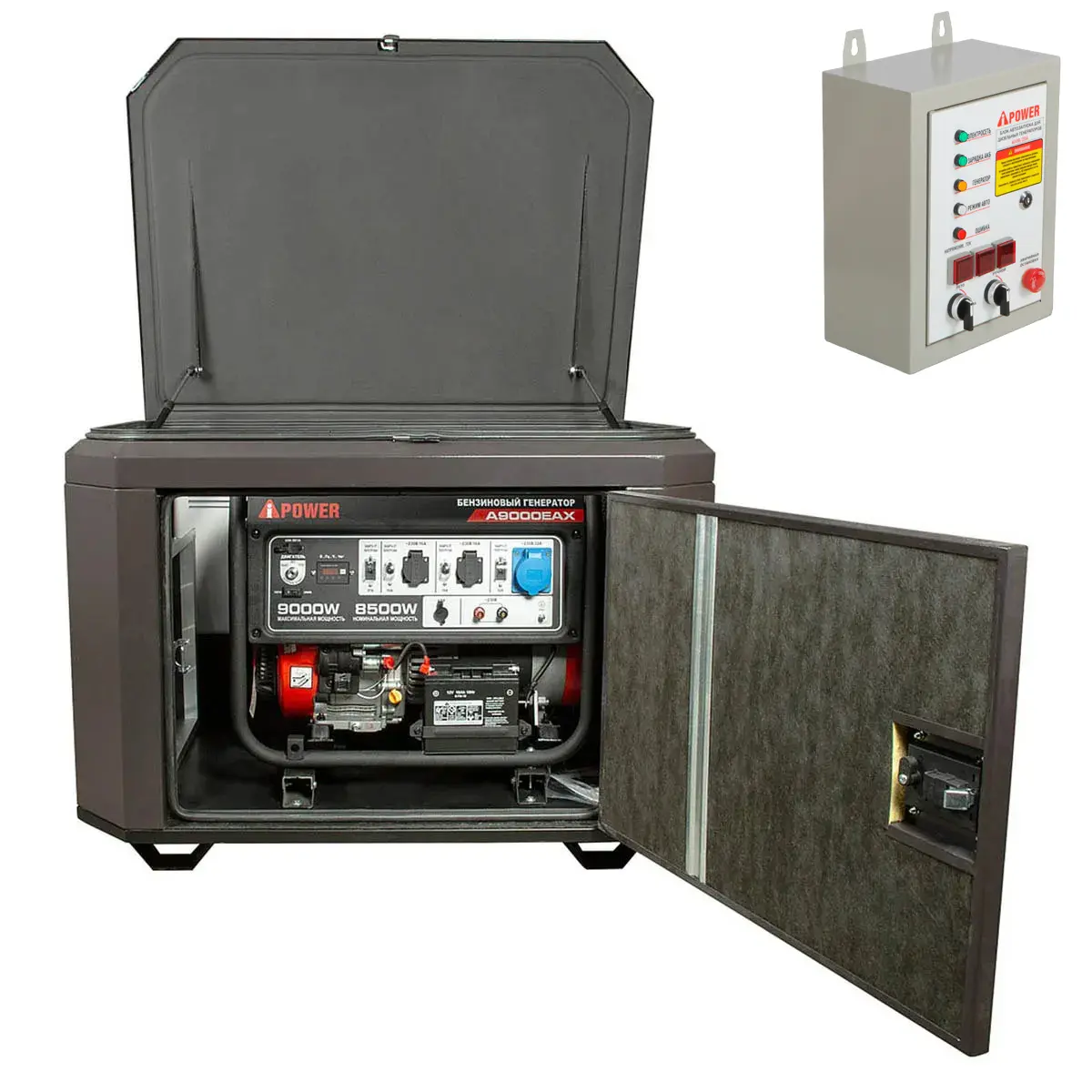 Бензиновый генератор A-iPower A9000EAX + блок автозапуска A-iPower 400 В, 25 А - надежный источник питания мощностью 8.5 кВт. Главное преимущество этой и других моделей производителя с индексом X заключается в способности выдерживать большую пусковую мощность, в данном случае - до 16 кВА. Такая особенность делает установку отличным выбором для работы с профессиональным ручным инструментом и электродвигателями.