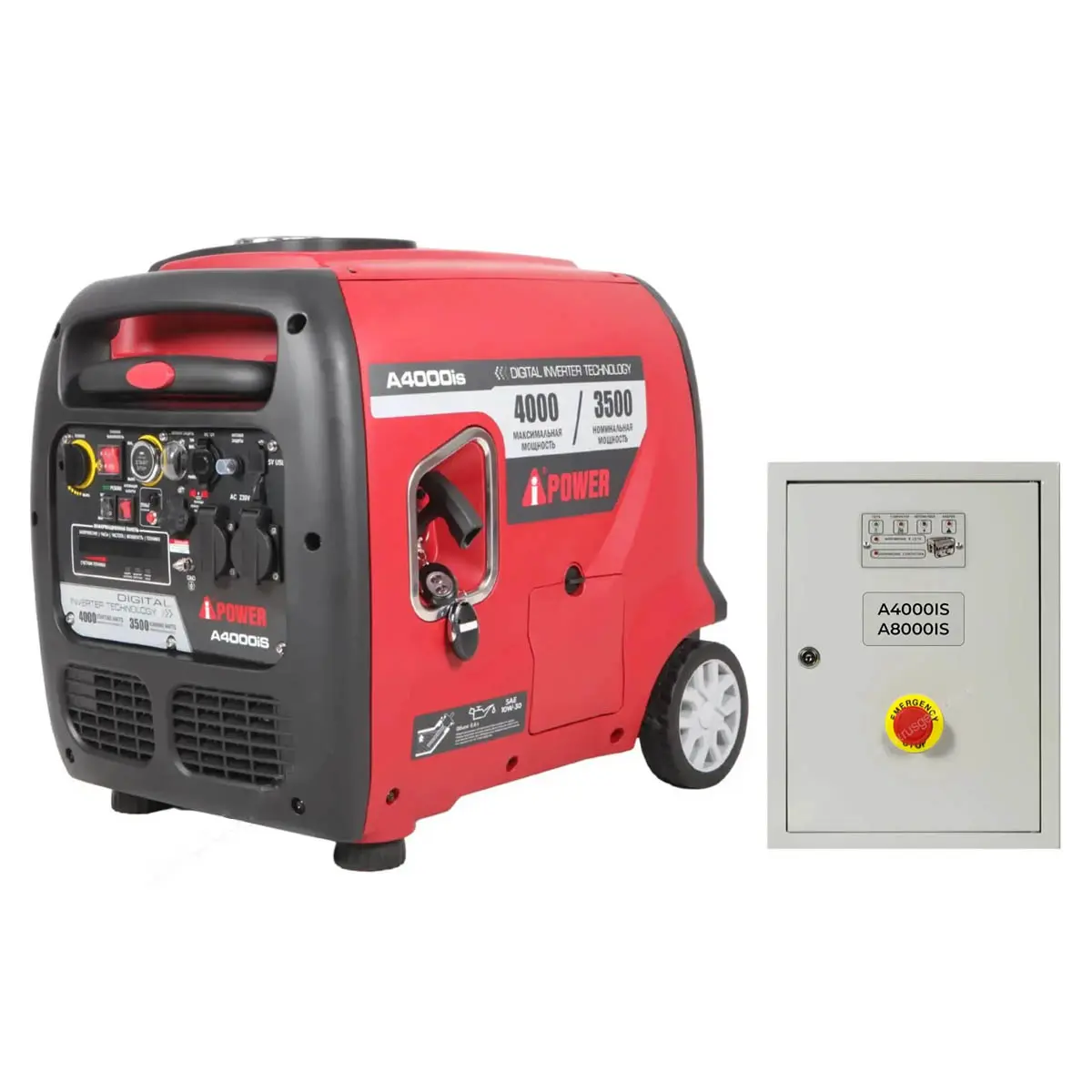 Инверторный генератор A-iPower A4000IS + блок автозапуска 230/400В для A4000IS / А8000IS представляет собой мобильную электростанцию мощностью 3.5 кВт в шумопоглощающем кожухе. За счет компактных размеров, встроенных колес и выдвижной ручки установку легко перемещать, что делает эту модель отличным выбором для отдыха на природе или электроснабжения различного инструмента при выездных строительных работах.