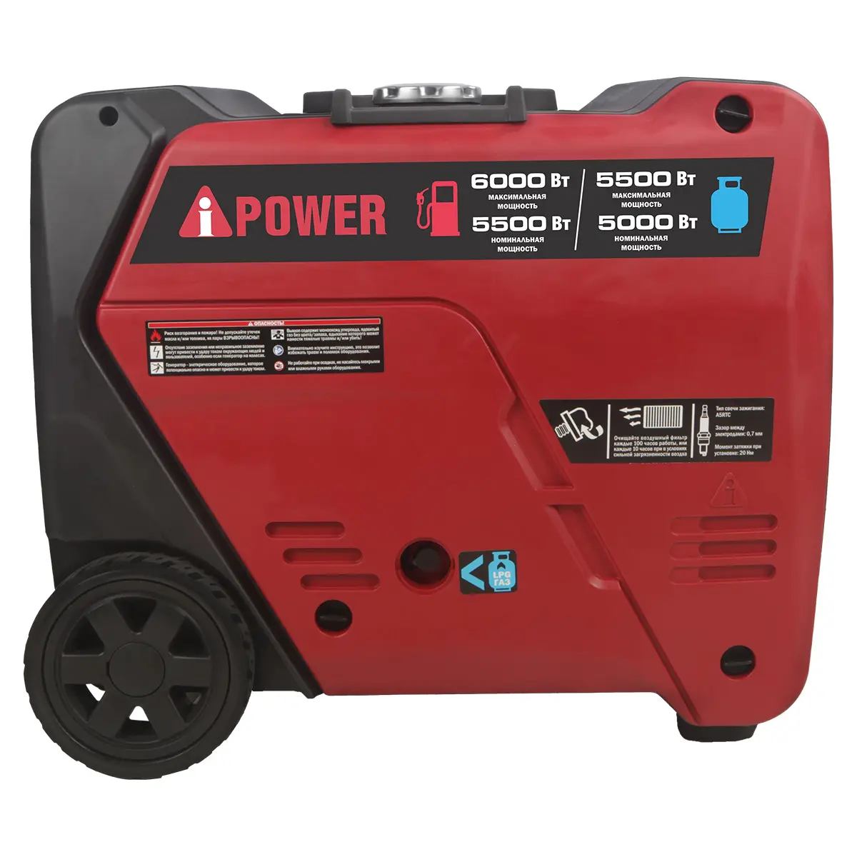 A-iPower A6000LiGS может работать как на бензине, так и на сжиженном газе. Это позволяет выбрать наиболее доступный вид топлива в данный момент.