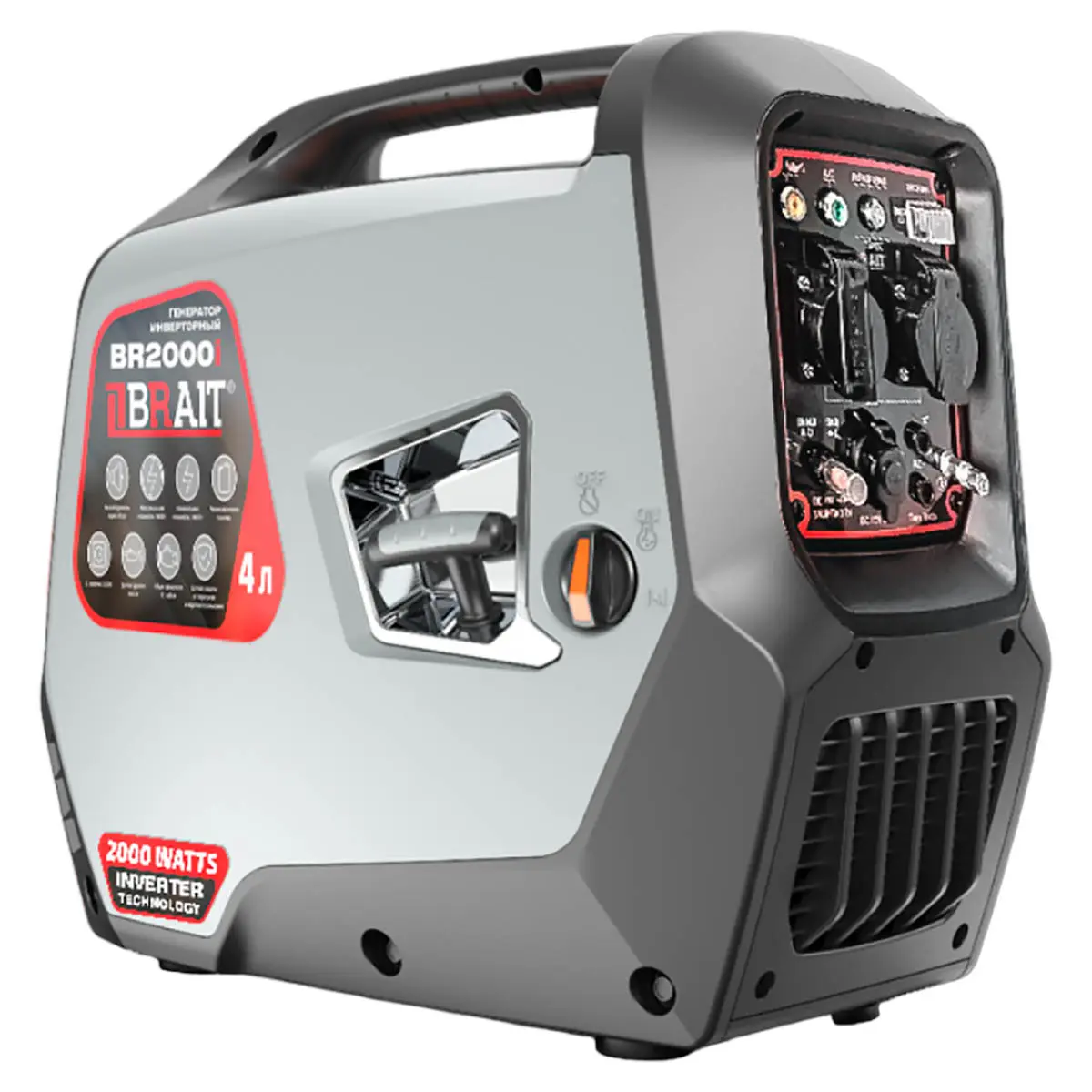 Инверторный генератор BRAIT BR-2000i - это мобильный бензиновый источник энергии, который может использоваться в качестве резервного в доме или на даче, а также для питания электроприборов на пикнике или в походе.