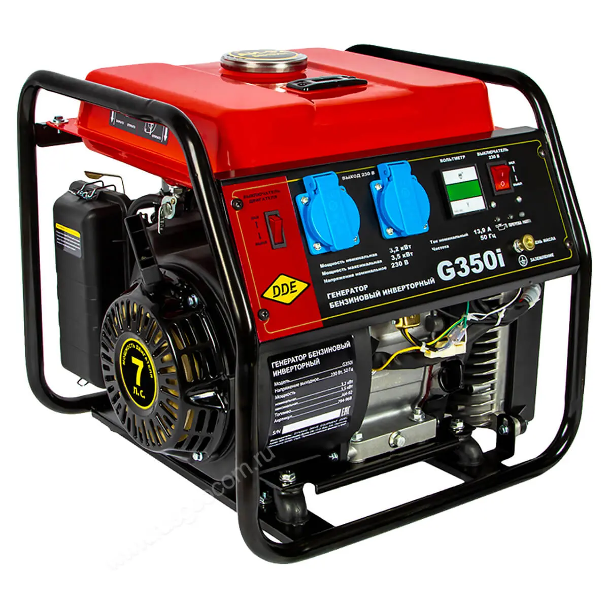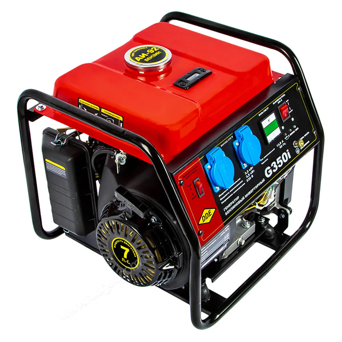 Эта полупрофессиональная модель оснащена мощным двигателем мощностью 7 л.с. и топливным баком объемом 5,7 литра, что обеспечивает до 4 часов бесперебойной работы бытовой техники, инструментов и осветительных приборов. Запуск генератора осуществляется с помощью ручного стартера. Две розетки позволяют подключать несколько потребителей с максимальной мощностью до 3,5 кВт. Благодаря инверторной схеме с блоком автоматической регулировки напряжения (AVR), DDE G350i обеспечивает стабильную синусоиду на выходе, что особенно важно для работы чувствительной техники.