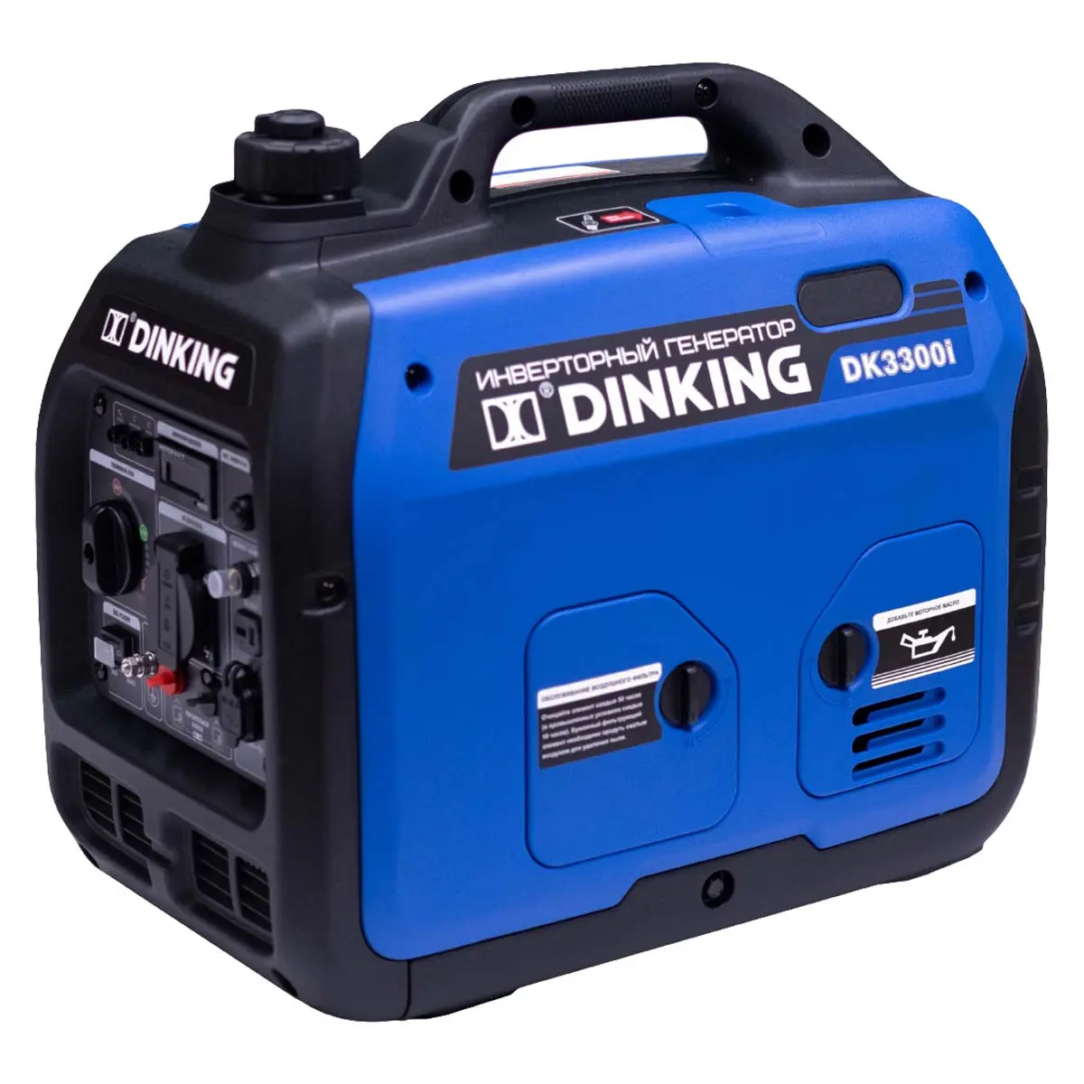Генератор производится с использованием IGBT-транзисторов, которые были изначально разработаны для выпуска высокоточных приборов и радиотехники. Номинальная мощность Dinking DK3300i – 3,0 кВт, максимальная – 3,3 кВт. Напряжение на выходе 220 V, которое регулируется автоматически.